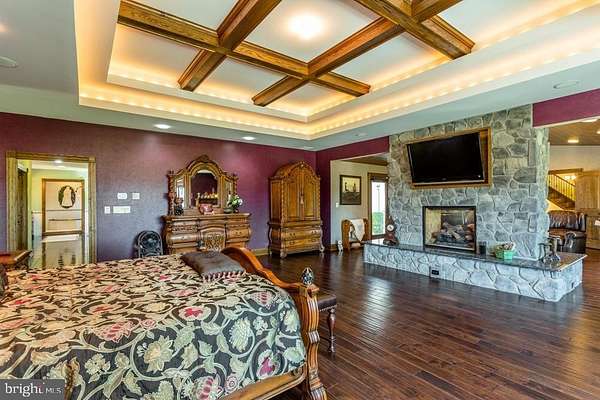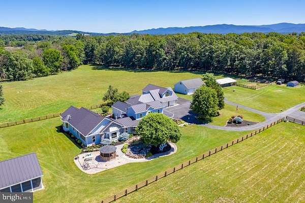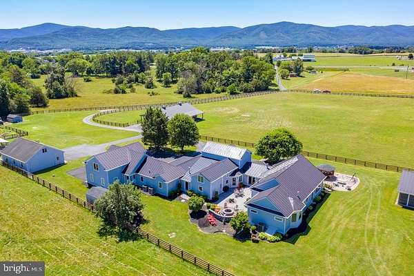 VIEWS & BEAUTY ABOUND! Luxurious comfort awaits on this spectacular farm in a beautiful location near Skyline Drive, Shenandoah National Park, Massanutten Resort, countless wineries and breweries, minutes from Harrisonburg! Extraordinary customization and attention to detail throughout this gorgeous home make this property truly exceptional, including quad-zoned HVAC, 4 separate fenced paddocks (with alleyway), outdoor storage sheds, a detached garage (with a lift and workbench), a beautiful horse barn, immaculate landscaping, gutter guards, & 30 amp RV outlet. The MASTER WING offers a wet bar, gas see-through fireplace, gas fireplace in bathroom, 2 large mounted TVs, 2 walk in closets, sauna, Jacuzzi, remarkable walk-in shower and exercise room. HORSE STABLE boasts 5 stalls, conditioned office, full bath, tack room, feed room, wash bay, shavings bay, hay storage in loft, fans, and music for the equine residents. The PAVILION is perfect for entertaining with full kitchen, stone wood-burning fireplace. So many possibilities here! Not only your perfect home and farm, but also incredible opportunity for a venue or short term rentals. This jaw-dropping home has it all! A more comprehensive list of special features has been uploaded in Bright.