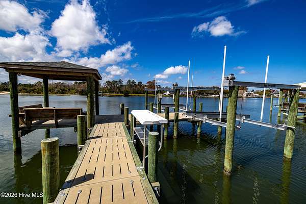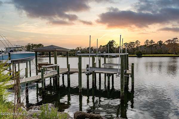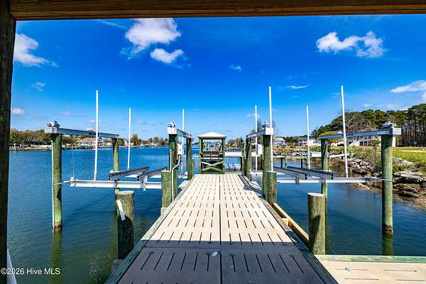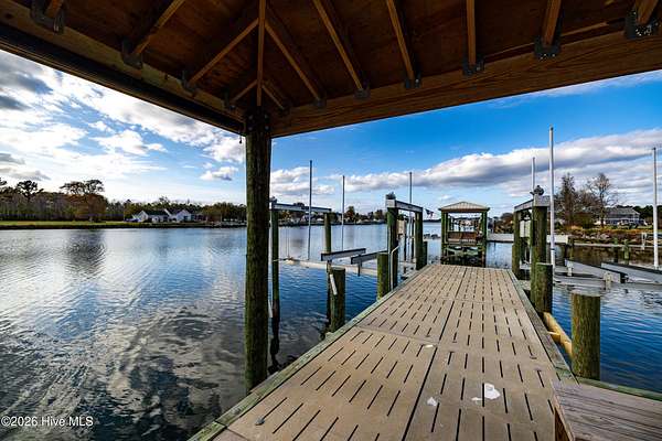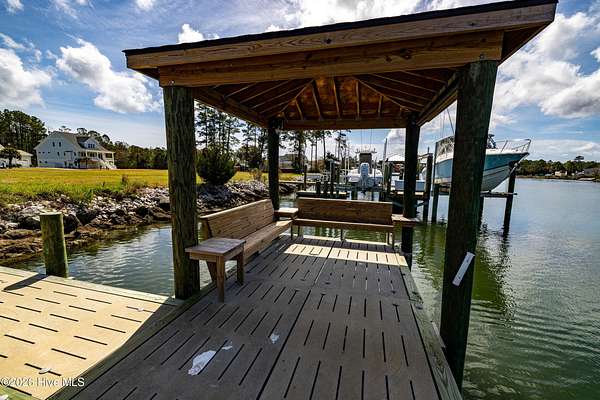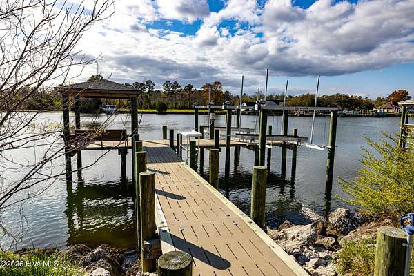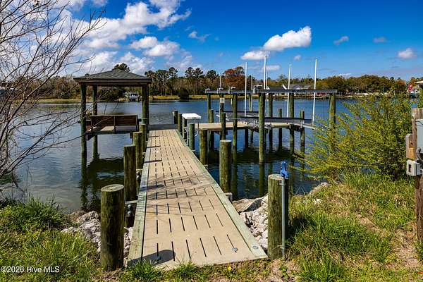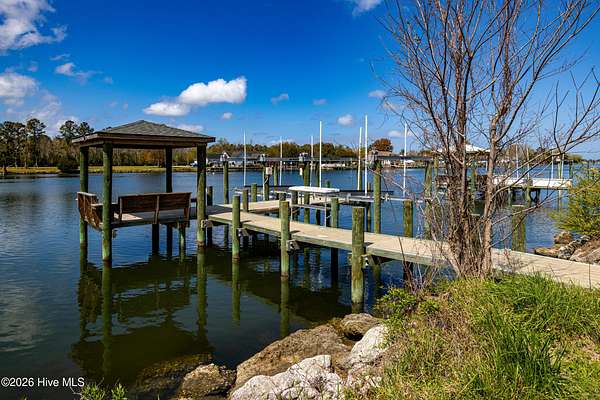 112 Waterway Drive provides a rare opportunity to build your dream home in one of the area's most desirable waterfront communities--where every day feels like a getaway! Nestled within the private community of Stanton Landing, this .66-acre lot offers endless potential to design your ideal waterfront retreat on the Intracoastal Waterway. Envision your dream home where wide porches frame panoramic water views. Your mornings will be filled with sunlight reflecting off Adam's Creek and the sounds of nature from the maritime forest across the water. Take advantage of your own private dock with two boat lifts. One 13,000 pound and a 7,000 pound both being on deep water. The dock is floored with long lasting Hog Slat concrete, has a gazebo with benches with water and power already installed. Spend your days boating to the pristine shores of the Cape Lookout National Seashore or simply cast a line and take in the view. As evening falls, watch the famous Crystal Coast sunsets paint the water stunning hues of pink and orange. This peaceful coastal retreat feels worlds away yet is conveniently located just minutes from historic downtown Beaufort. Enjoy easy access to the restaurants, shops, and attractions of Beaufort, Morehead City, and Atlantic Beach. Residents of Stanton Landing enjoy resort-style amenities, including a pool, clubhouse and boat ramp access. Whether you envision quiet mornings overlooking the water or afternoons spent boating along the ICW and exploring the Crystal Coast, this lot provides the space, setting, and conveniences to bring your vision to life. The lot is construction ready with a well already drilled, septic permit and built up, elevated building site. Bring your own builder or Seller is a licensed NC Building Contractor who welcomes the opportunity to talk to you about building your vacation or forever home on this beautiful lot.