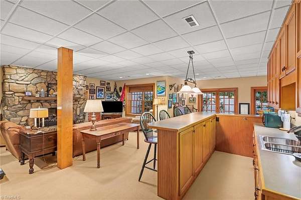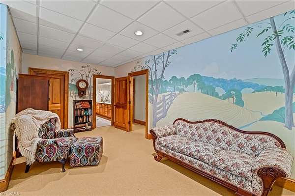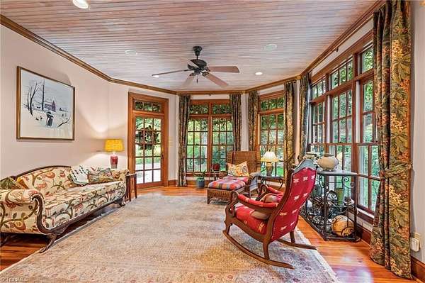 Southern elegance defines this one-of-a-kind home inspired by a Southern Living floor plan. Nestled on over three acres of private, beautifully landscaped grounds, this property offers refined craftsmanship and modern comfort at every turn. The heart of the home centers around the Great Room with vaulted ceilings, surrounded by a library and anchored by one of four fireplaces, creating an atmosphere of warmth and sophistication. The luxurious primary suite features its own fireplace and a serene retreat-like feel, while the expansive finished basement provides exceptional space for entertaining, recreation, or guests. Outdoors, mature landscaping, a waterfall and a peaceful natural backdrop offer the perfect setting for quiet mornings or elegant evenings under the stars. Every detail reflects craftsmanship, comfort, and sophistication in perfect harmony. This remarkable property blends elegance with modern luxury, offering a rare opportunity to own a home that is timeless.