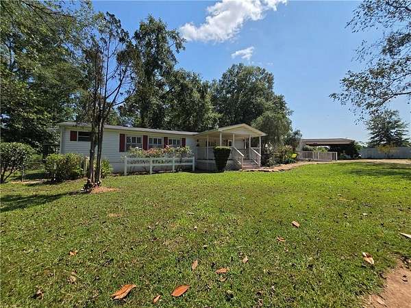 Est $1,591/moGated, single-level manufactured home on 8.43 acres. A private drive opens to a well-manicured front yard, with multiple storage buildings and sheds spread across the property-ideal for tools, equipment, toys, and on-site workspace. Inside, the home's single-story layout keeps life easy. Wheelchair accessible entrance, open living/dining flow, comfortable bedrooms, and simple access to the outdoor areas. Covered back patio is perfect for entertaining or having your morning cup of coffee. Schedule your tour today!
