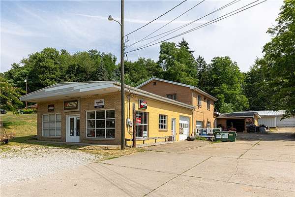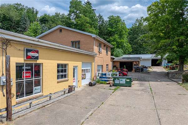 Est $4,521/mo3000 sq/ft building brick and block building with an additional 1000 sq/ft garage in the rear. It is currently used as a lawn mower shop and has several garage door areas leading into the building. There is a partial second floor with office space. The property includes a well-maintained 2-bedroom brick ranch presently residentially rented but could be lived in, used as more business space, or commercially or residentially rented. The 1.2-acre property is conveniently located on busy Henderson Ave/SR-18 for great signage. There are 8-10 parking spots and about 1/3 of the lot in the rear for additional parking or storage. Excellent opportunity. Please schedule any showings.