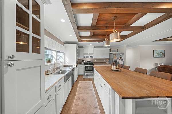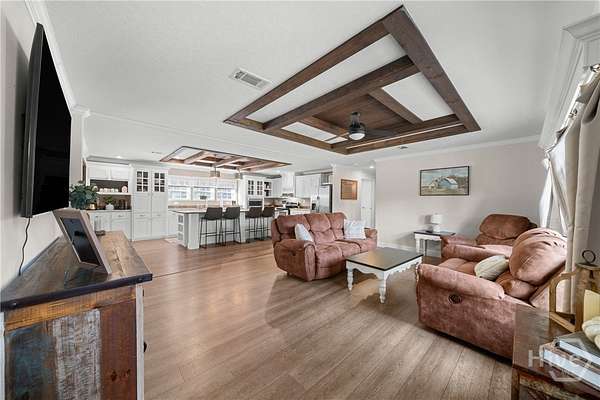 Welcome to your private retreat on 15.16 acres in Newington! Built in 2021, this 2,432 sqft home offers 4 bedrooms and 2 bathrooms with a beautifully designed open-concept layout. The spacious living area features luxury vinyl plank flooring, custom wood beam ceiling accents, and abundant natural light, flowing seamlessly into the stunning kitchen complete with a large island, stainless steel appliances, farmhouse sink, and ample cabinetry for storage. The oversized primary suite boasts a spa-like bath with double vanities, soaking tub, and a separate tiled shower, along with a generous walk-in closet. Secondary bedrooms are well-sized with plush carpet, while additional living and dining spaces provide flexibility for entertaining or everyday living. Enjoy peaceful outdoor living with a large covered front porch and an expansive rear deck overlooking the private, partially fenced acreage. The property includes a private well and septic system, plus a large covered storage building/workshop perfect for equipment, hobbies, or recreational use. With a long driveway, wooded surroundings, and plenty of open space, this property offers the ideal blend of privacy, comfort, and functionality just minutes from Hwy 21.
