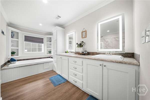 - Breakfast Bar, Double Vanity, Kitchen Island, Main Level Primary, Pantry, Primary Suite, Separate Shower, Tray Ceiling(s)