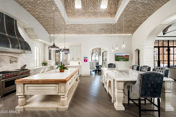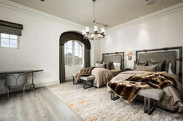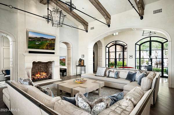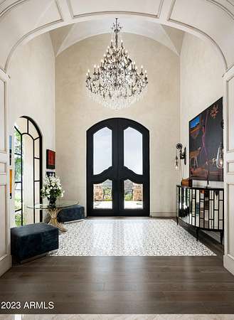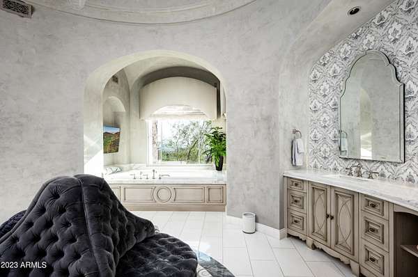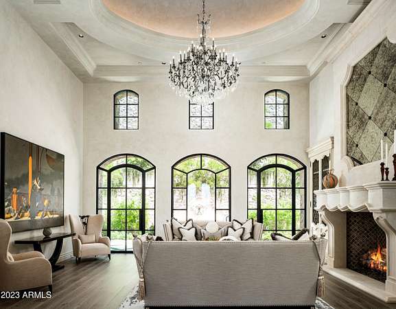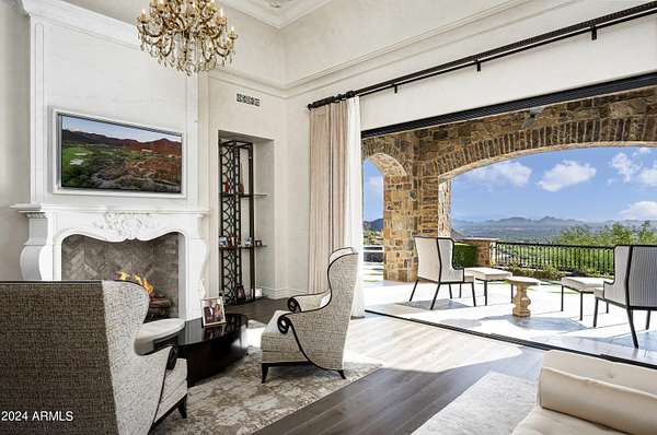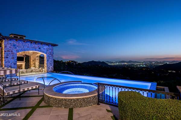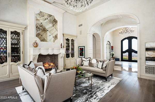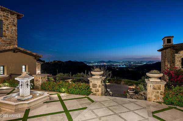 AUCTION BIDDING OPEN! BIDDING ENDS WEDNESDAY, DECEMBER 17TH. PREVIOUSLY LISTED FOR $24,000,000. CURRENT HIGH BID $12,000,000. An architectural masterpiece emerges from the exclusive Upper Canyon of Silverleaf, where the nationally and internationally celebrated Castle on the Hill commands sweeping vistas across Scottsdale's most coveted terrain. This immaculate 2020 estate delivers over 13,600 square feet of unrivaled sophistication on 3.3 acres, showcasing panoramic views of the McDowell Mountains, Camelback Mountain, and brilliant city lights. From Swarovski crystal accents in the opulent primary suite to gold-inlaid floating staircases crowned with Italian chandeliers, every detail reflects extraordinary craftsmanship. A separate two-bedroom guest house
