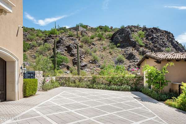 North on Thompson Peak Pkwy, east to Windgate Pass Dr through guard-gate, left on Saguaro Canyon Trl, Right on Canyon Cross Way to lot at the end of the cul-de-sac.