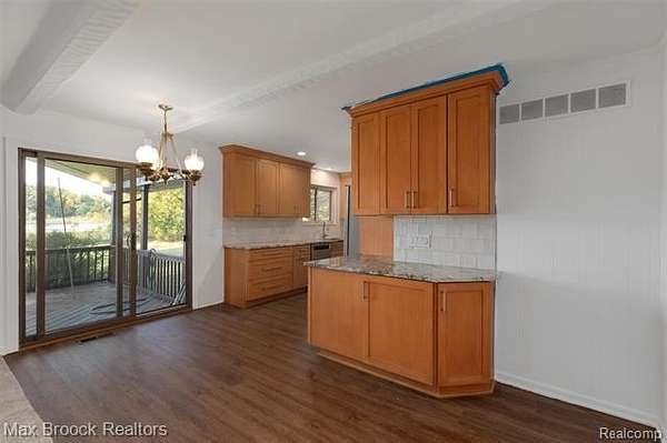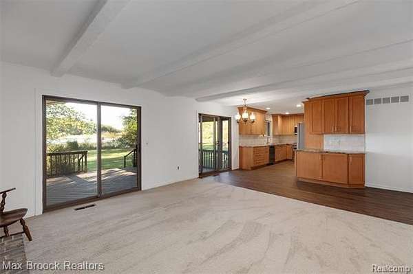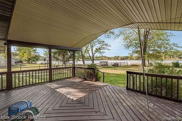 Waterfront home located on Woodruff Lake! Brick Ranch with covered porch and attached 2+ car garage is located at the end of Ford Rd. New carpet (9/2025), home is freshly painted, with updated Kitchen and Bathrooms! Step inside to the Living Room which leads to the Family Room - complete with Brick Fireplace and Door Wall to covered Deck. Open concept connects the Family Room/Dining Space and Kitchen. The Kitchen offers: Maple Cabinetry (42" Upper Cabinets), with soft close drawers; granite counters; and Stainless-Steel Appliances. Large, covered Deck is also accessed from the Dining Area. The Primary Bedroom Suite - with views of the lake - is sure to please and features Walk-in Closet and remodeled Bathroom with Granite Topped Vanity; Jetted Tub; and Toto Toilet. 2 Additional Bedrooms and Full Bathroom off the Main Hall. Screened Porch is conveniently accessed off Kitchen. First floor Laundry Room and attached Garage with extra storage above.