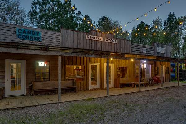 Fortis Ranch, A private, fully furnished estate in W TN on 1,117 pristine acres.At the heart of the ranch lies a 7,160-square-foot main residence, boasting 14 expertly designed rooms, including 4 spacious bedrooms and 4 luxurious bathrooms & 1 half bath. The interior features a grand foyer, hardwood floors, custom California Closets, multiple fireplaces,Billiard room, 3 primary suites (1 with a Juliet balcony overlooking the great room and the other with a private tower overlooking the gardens, creating a rich and inviting ambiance throughout. The chef's kitchen is a showstopper--fully renovated with marble and granite countertops, double ovens, premium appliances, and a breakfast bar for casual gatherings. A partial basement provides wine storage and a storm shelter, and the home is secured with a state-of-the-art security system. Also two fully furnished guest bungalows, built in 2021, each positioned to take in the sweeping views. Between them lies a large courtyard and open-air wedding pavilion--a stunning venue for private events, family gatherings, and celebrations under the stars. The centerpiece is the unmatched character is its hand- crafted Western town, designed as both a private retreat and an entertainment destination. Walk the wooden boardwalks past the General Store, two saloon-style hotel rooms, a nostalgic candy shop, and a live music stage--a performance space formerly used by Nashville record labels for music videos and charity fundraisers For the working side of ranch life, Fortis Ranch includes +- acre ranch bordered by Owl & Snake Creek with water rights to a stocked 5+- acre lake, multiple ponds, and artesian wells. Several homesites with stunning valley views. Former sod, corn & soybean farm with county soil report on file. Onsite sand & gravel pit supports extensive, professionally built internal roads. Ideal for ranching, farming, hunting, or recreation.a large equipment shop with dedicated office space, a sprawling hay barn,and pastureland.