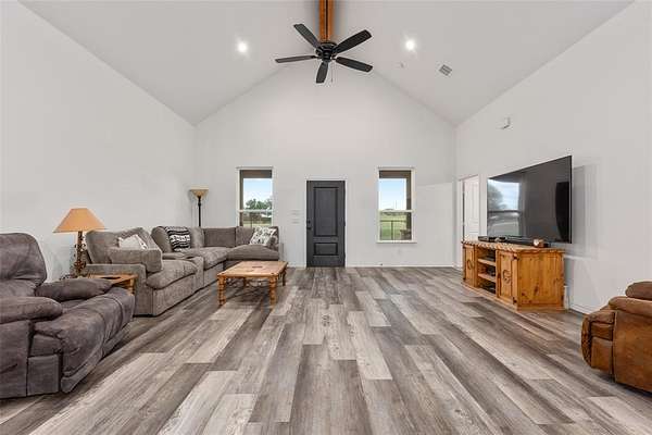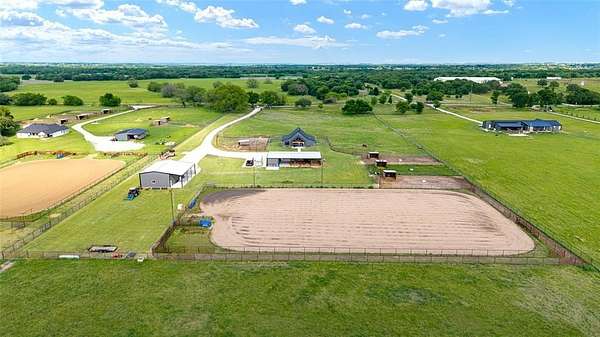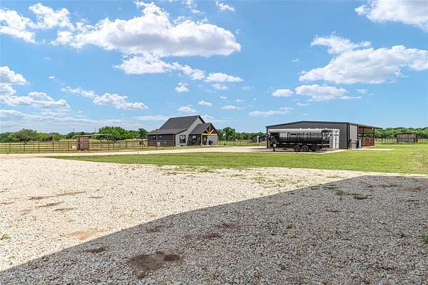 You will not find a better setup than this CHARMING HORSE PROPERTY in Lipan! This exceptional property offers so much and has lots of recent upgrades. This 10 acre property boasts a beautiful modern home thats 1707 square feet, lots of open space with a vaulted great room open to the kitchen. Three bedrooms, two baths, the primary bedroom and bath are exceptional and has a large walk in closet. Home was built in 2022. Entire property is fenced and cross fenced. Pipe fencing with no climb wire. There are four large traps with loafing sheds, all have automatic waterers. Two large pastures with shade and automatic waterers. Barn, 20x60, has three large stalls, could be converted to six stalls, water lines in place, tack room has saddle and bridle mounts, large feed room, and a concrete wash area. 125x250 lighted arena with an air operated priefert roping chute. New lines recently ran to the newly built 30x50 insulated shop. Shop has two large roll up doors, fully wired, inclosed separate storage area that could be converted into a in-law suite. Has overhead storage as well. Water purification system recently added, reverse osmosis system to sink and refrigerator. New entry gates. Every part this property has been meticulously maintained and thoughtfully designed. Finally, when you have guests, they can plug into two 50-amp RV plugs or one 30-amp RV plug. Move in, start roping!