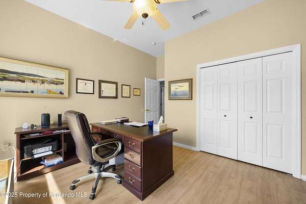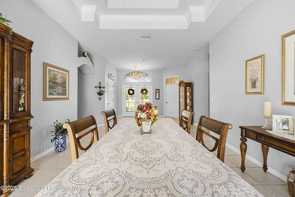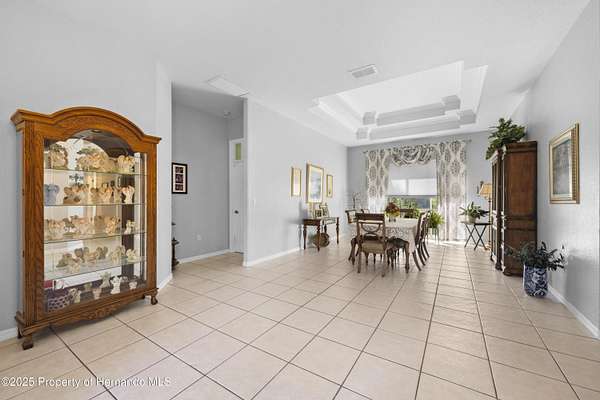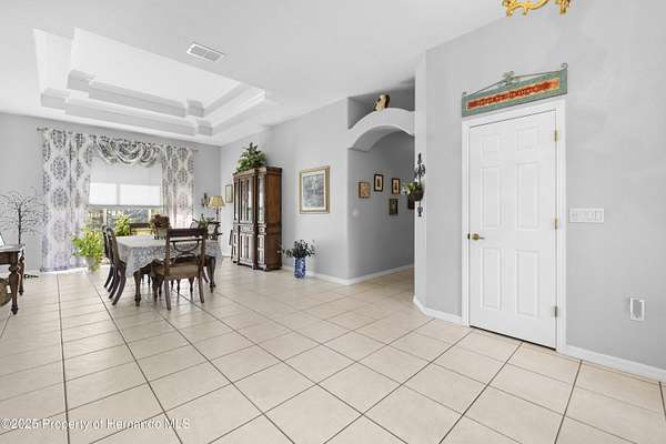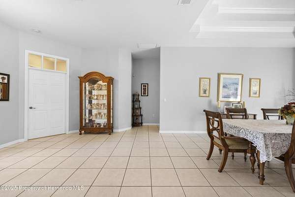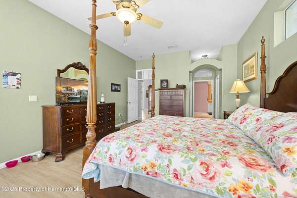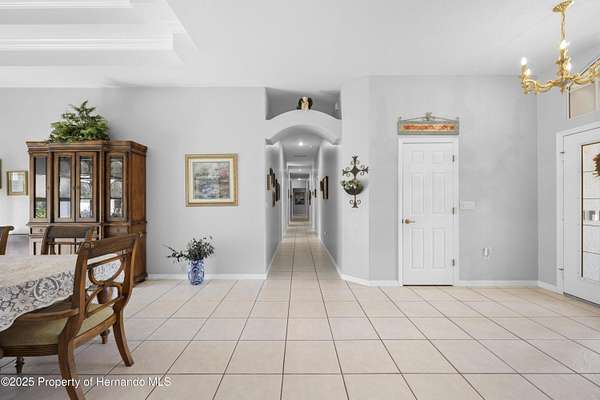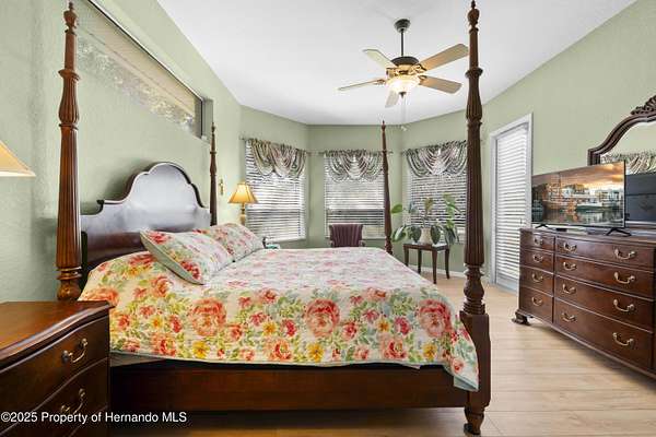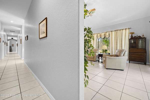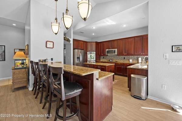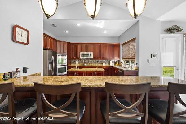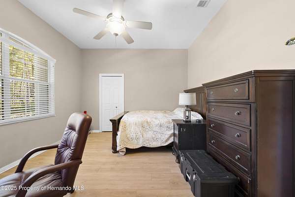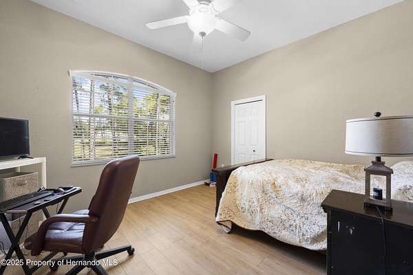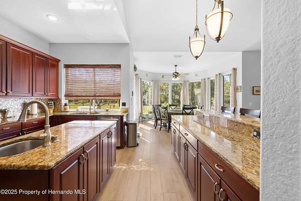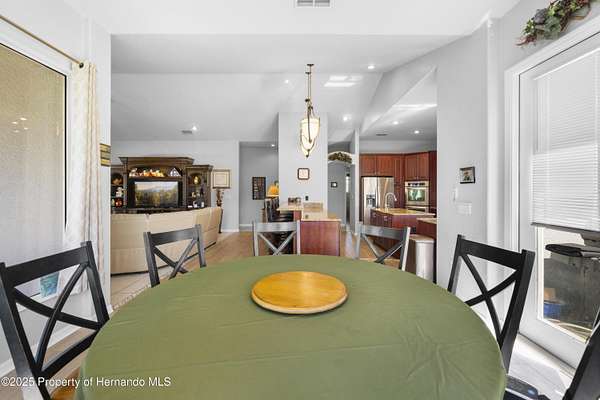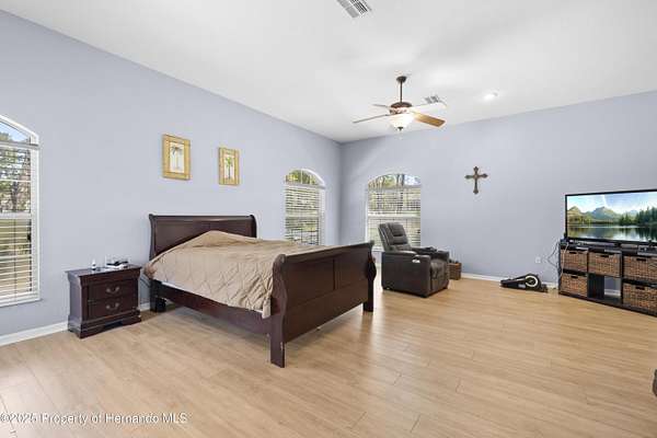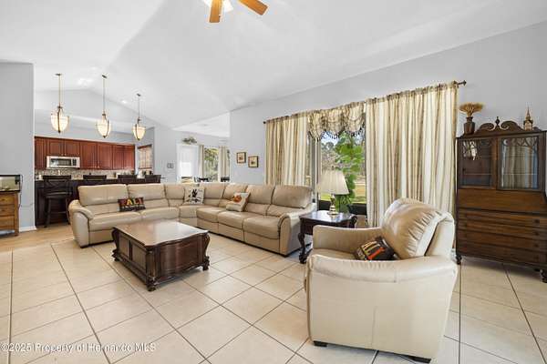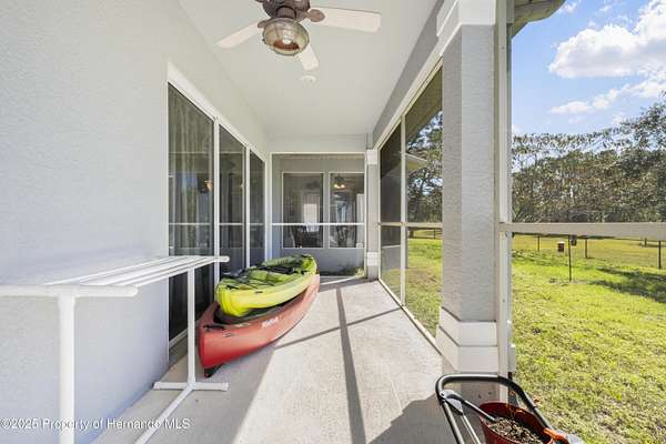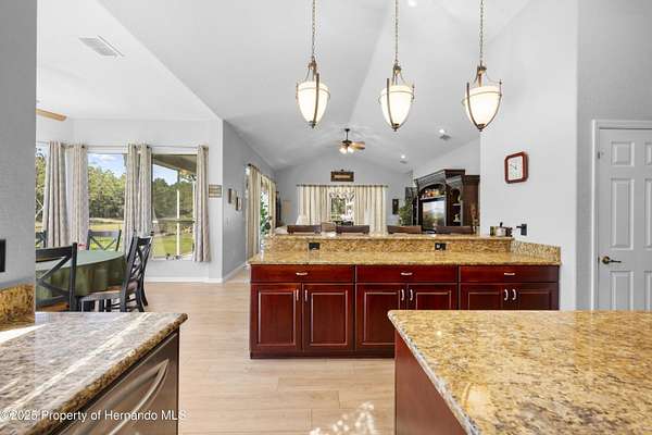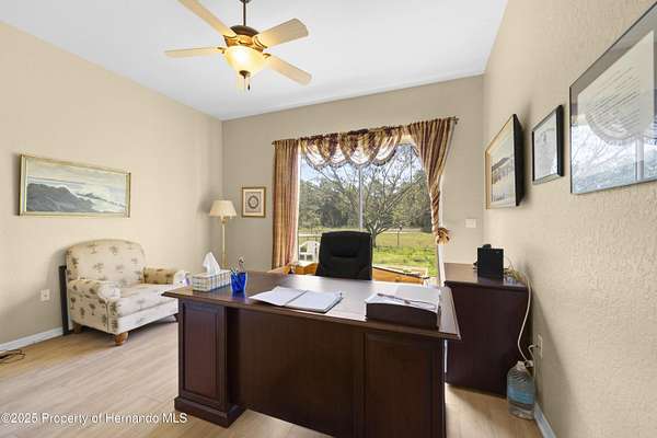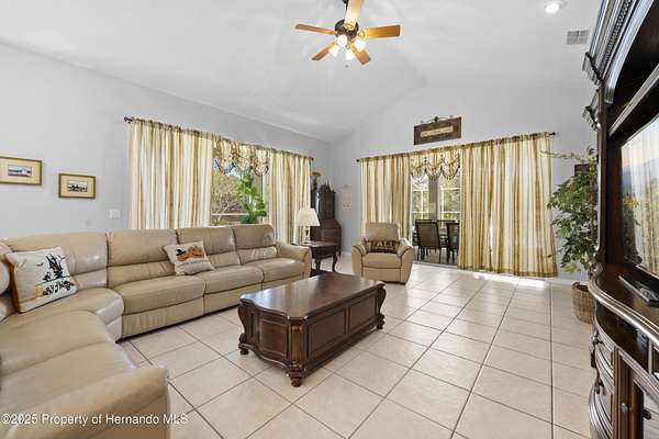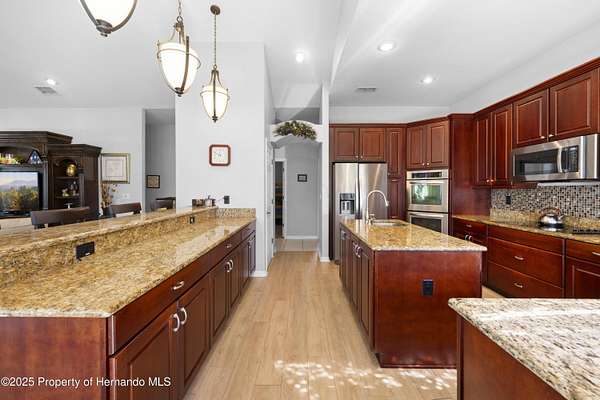 This magnificent estate offers a rare opportunity to own a home with 4,409 square feet of living space on more than 4 acres, complemented by the low HOA fees of the sought-after Woodland Waters community. With 6 bedrooms, 3.5 baths, and a 3-car garage (one air-conditioned), the residence provides a sprawling, flexible floor plan that includes a large great room and an additional family room for entertaining. The gourmet island kitchen is a culinary enthusiast's dream, featuring a bar sink, a breakfast bar, and quality stainless steel appliances like dual wall ovens, while large windows in the dining area offer serene, full-glass views of the expansive property. Modern and energy-efficient systems are in place, with two newer A/C units (2022 and 2020) and two water heaters. The outdoor living space is equally impressive, with a huge, screened-in, solar-heated pool with a newer Diamond Brite finish, a 4-person hot tub on the screened back porch, and a chain-link fenced area ideal for pets or children to play. Home is on Hernando County Water but sprinkler system is on an Irrigation Well. A long, double-wide driveway provides abundant parking for an RV or large trailers, and the property is conveniently located just a few miles from the Weeki Wachee Mermaid Attraction, beautiful beaches, and a wide array of shopping, dining, and medical facilities.