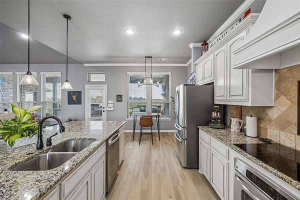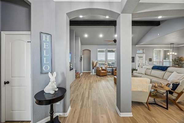 Stunning home set on a private 1.5-acre lot with sweeping views of nature and a resort-style pool designed for relaxing and entertaining. Thoughtful updates throughout create a warm, inviting atmosphere, including new luxury vinyl plank flooring, fresh interior paint in a neutral designer palette, and elegant crown molding. The open-concept floorplan is spacious and filled with natural light, offering comfortable everyday living and effortless entertaining.
