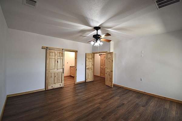 Commercial AND/OR residential - NOT JUST A BARNDOMINIUM!!!! 15.5 APPROX TOTAL ACREAGE IN TWO PARCELS. This home was built as a forever home. Newly constructed in August of 2023 and never occupied, this impressive barndominium sits on 15 1/2 acres and features a spacious floorplan of 2500 square feet of living space including four bedrooms and three full bathrooms. Primary bedroom has reading room/office and wheelchair accessible bathroom. Special features include a tornado room/walk-in pantry, tankless water heater, wide doorways and roll in showers. All bedrooms have exterior doors. Knotty pine custom cabinets, doors and trim and granite countertops are consistent throughout. Kitchen is appointed with GE appliances. Porches are insulated to give protection from the west Texas heat. Living quarters open to approximately 2600 square foot shop with 110 and 220 electricity provided via hanging power drops as well as wall plugs. Shop with overhead door includes half bath, office, kiln room, craft room, heating and cooling room as well as a separate room for pressure tank and water connections. A 3-car garage includes a tall overhead door for RV or boat storage. All overhead doors and garage doors are insulated. Every detail has been carefully considered. Custom built by respected builder Henry Neudorf. *Property is in two parcels in LCAD. Total acreage for property is approximately 15 1/2 acres. *2024 taxes for R329044 with dwelling $10,425.61. 2024 taxes for R332797 additional acreage $1,354.