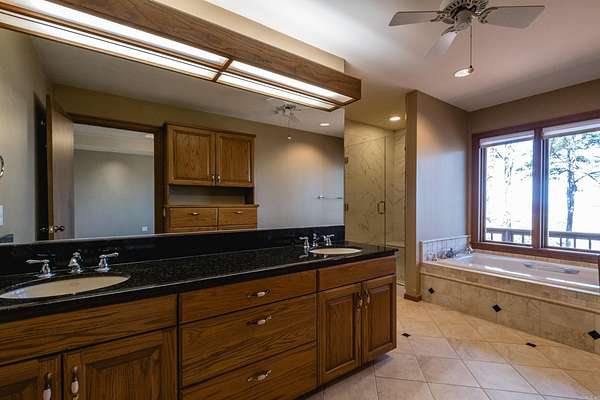 HWY 10 West to right on HWY 300 @ Chenal Parkway. Left on Barrett Rd to right on Old Arkansas Drive to gate (gate code required) follow to house on the left.