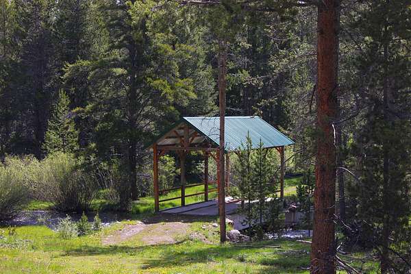 A notable feature of the ranch is its private 4,000-foot grass airstrip, providing easy access for aviation enthusiasts. Senior water rights covering 232+- acres ensure the land's lushness is maintained through gravity-fed irrigation, underscoring the ranch's blend of natural beauty and practical amenities.