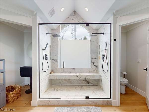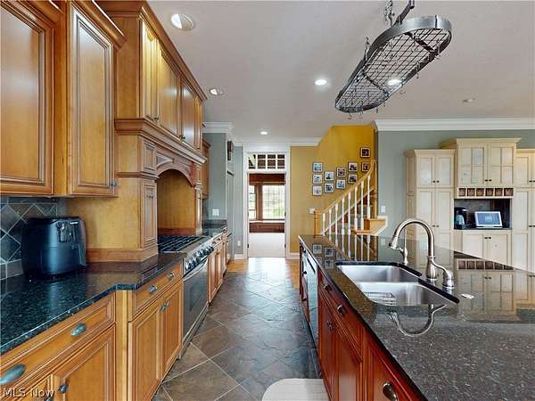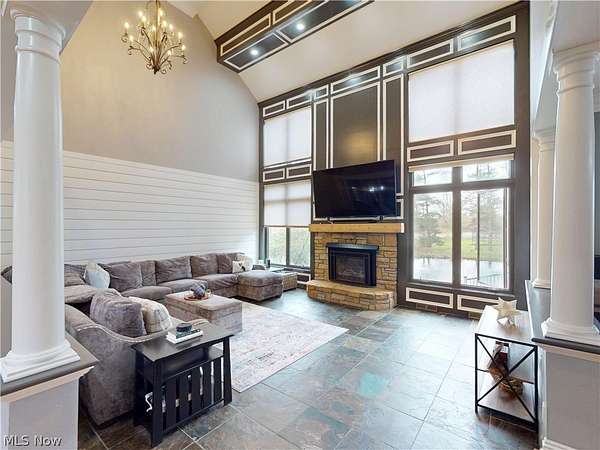 Welcome to this extraordinary estate offering over 5,000 square feet of thoughtfully designed living space, perfectly situated on more than 6 private acres with scenic views and two ponds. This impressive home features 5 spacious bedrooms and 4 full bathrooms, designed for both comfort and functionality. Step inside to experience soaring ceilings, an open-concept floor plan private first-floor office and abundant natural light throughout. Dual staircases lead to the upper level, adding both elegance and convenience. The main level includes a desirable first-floor laundry room and expansive living and entertaining spaces ideal for modern living. The finished lower level is a standout feature, complete with a private in-law suite including a full kitchen, separate staircase access, and a dedicated workout room perfect for multigenerational living or guest accommodations. The estate's beautifully appointed carriage house offers approximately 2,000 square feet of versatile space, blending charm, privacy, and modern comfort. This thoughtfully designed structure provides endless possibilities. A large versatile barn with heating and cooling, plus a loft above, provides endless possibilities' whether for a workshop, studio, storage, golf simulator also featuring its own 3-car garage. Surrounded by nature, the property's two ponds and expansive acreage create a serene, private setting while still offering ample space for outdoor activities and entertaining. This one-of-a-kind property combines luxury, space, and flexibility truly a rare opportunity.