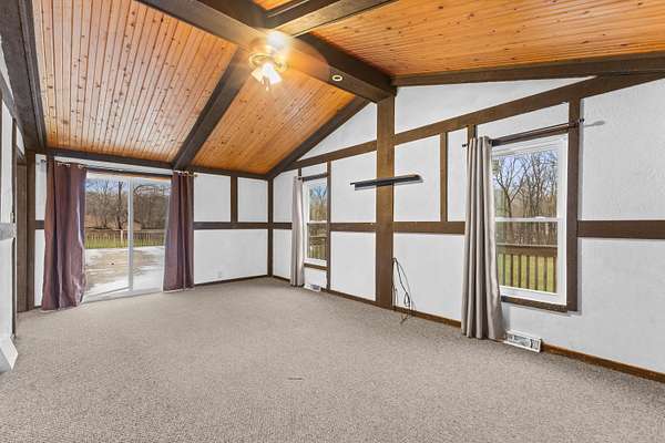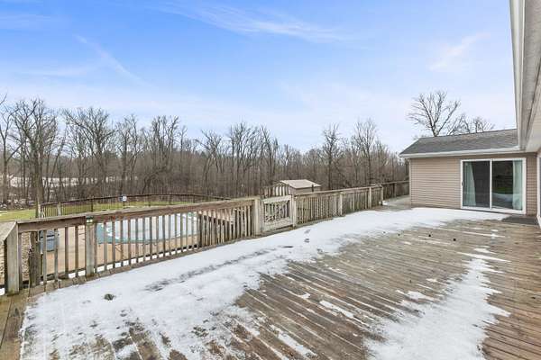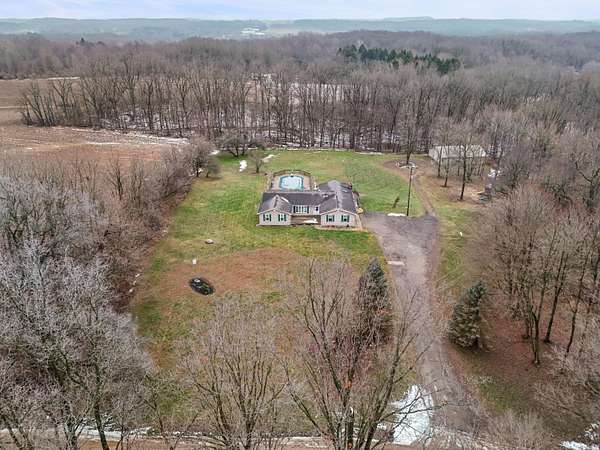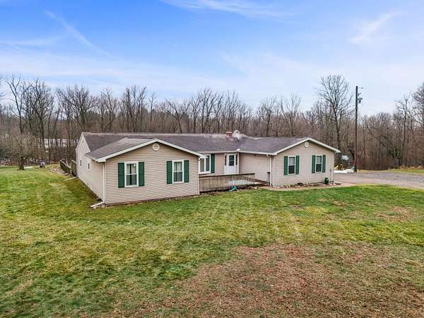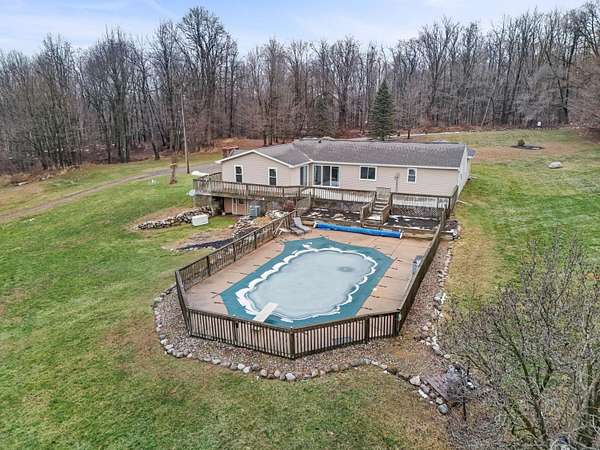 Welcome to this spacious ranch-style retreat set on 5.59 private, wooded acres just 2 miles from downtown Vermontville. Offering 2,244 sq ft, this home features 4 generously sized bedrooms and 1.5 baths, including recently remodeled bathrooms and an updated bedroom for modern comfort. The inviting living room is anchored by a cozy wood-burning fireplace and opens to the expansive deck through sliding glass doors. The deck overlooks the in-ground pool and mature trees-perfect for entertaining, relaxing, and making memories. Recent upgrades include new Wallside windows, vinyl siding, and a 2025 Generac whole-house generator. The property also includes a 48x38 pole barn with concrete floor and 100-amp service, ideal for storage, hobbies, or a workshop. Enjoy privacy, space, and nature with the convenience of nearby town living-this is country living at its finest. Schedule your private showing today.