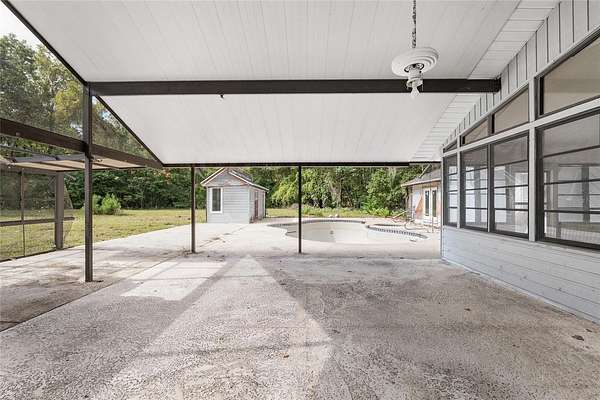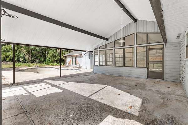 Investor special or end-user with vision. This rare 5-acre estate on West Newberry Road offers a blank canvas to complete your own custom design. Located in a prime area just before Town of Tioga, this spacious 5-bedroom, 5-bathroom home w/vaulted ceilings, includes an in-law suite, pool with cabana and storage, and a 3-car garage with circular driveway. NO HOA. The property has already undergone major updates including a new roof, HVAC unit, updated plumbing and electrical, new water heater, new vinyl plank flooring, new doors and hardware, new ceiling fans, new front door and patio tile, some replaced pool equipment, fresh exterior paint, and approximately $15,000 in landscaping and tree removal. The interior is fully gutted with all prior kitchen and bathroom fittings removed--ready for a full custom build-out. On well and septic. Almost 5 acres of land provide space, privacy, and potential for future improvements. Great location minutes from Tioga Town Center, shopping, restaurants, and I-75. Sold As-Is.