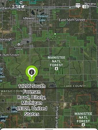 Location is everything--and this property puts you right in the heart of it all. Situated in Lake County, just seconds from extensive SXS/ORV trail systems, the Manistee National Forest, and countless lakes and rivers, this 10-acre wooded parcel is a dream basecamp for outdoor enthusiasts. Ride right from your property to miles of trails, spend your days exploring federal land, or enjoy nearby access to some of Northern Michigan's best fishing, kayaking, and boating spots. Whether it's trail riding, hunting, or simply unplugging under the stars, this location delivers the true Up North experience. The land itself is equally impressive, featuring an adverse canopy of mature birch, oak, maple, and poplar trees creating a serene and picturesque landscape. The property is already equipped with electric and water, along with a solid brick garage and attached lean-to--perfect for storing your toys and gear. An older trailer with an addition is also located on the property, offering an opportunity for a rustic hunting camp while you plan your future build.