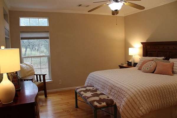 The Royal D Ranch The Royal D Ranch is a choice Hill Country ranch with an appealing home that is available for the first time. It is located in south San Saba County, between Llano and Brady. This is one of the finest and healthiest ranches available in terms of native plant quality and diversity for wildlife or for livestock. Summary. 100 acres of beautiful ranchscape 4 bedroom 2 bath rocked home built in 2007. 2,239 square feet. Strong 50 GPM well with good quality water New metal barn built in 2006 with 220 power Hunting blinds, feeders, and water troughs convey to the new owner Seasonal creek and unspoiled Hill Country views, about an hour and a half northwest of Austin Fiber optic internet connections In over 25 years in ranch real estate, this is one of the best ranches we have seen in terms of vegetation. The ranch is very well wooded, and desirable oak trees are the predominant tree species. The native browse and grazing plants are some of the best that God made for this part of the world. It has strong stands of bristlegrass, sideoats, sprangletop, and even some yellow Indiangrass. The range condition is excellent. The home is lovely, it has a large kitchen with an island. The dining area is adjacent, with a nice view of the ranch. Flooring in the home is engineered wood and tile. The living room has a rock fireplace and lots of glass to see the large front porch and the native trees and wildlife. The master bedroom is roomy and has a large bathroom. It has a jetted tub, separate walk-in shower, and double sinks. The second bathroom is a full bathroom with double sinks. Just off the kitchen is a laundry room and a walk-in pantry. A storage shed is right behind the house. Out the laundry room door is a large rock patio, perfect for evening barbecues and beverages. There are additional features, we hope you will come out to see them.