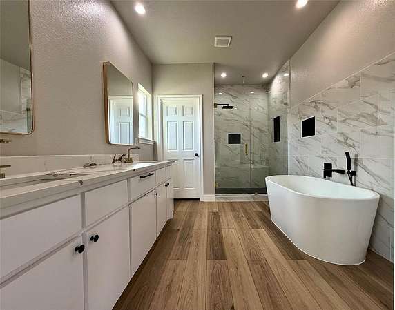 Enjoy a true retreat in the spacious primary suite, complete with a spa-like bathroom, dual vanities, and a custom walk-in shower. The expansive laundry room connects directly to the primary closet and opens to the kitchen, offering the ultimate in everyday convenience. A junior master suite with a private bath provides comfort and privacy for guests or family.