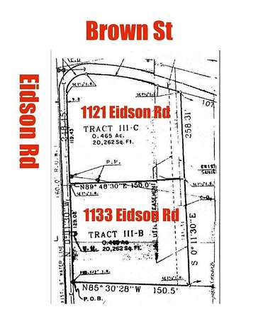 Est $1,637/moCommercial corner lot for sale located at the intersection of Brown St and Eidson Rd. Zoned B-1. Offers approximately 0.465 of an acre lot. less than half a mile from intersection of El Indio Hwy and South Bibb Ave. Can be sold separately or together with adjacent lot 1133 Eidson Rd that also offers 0.465 of an acre lot. Contact Listing Agent for more information.