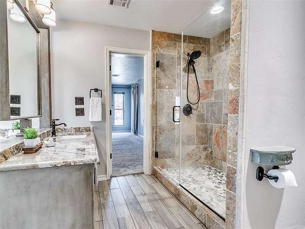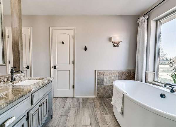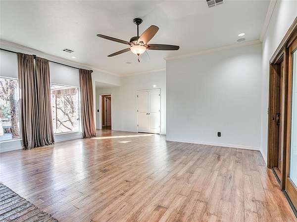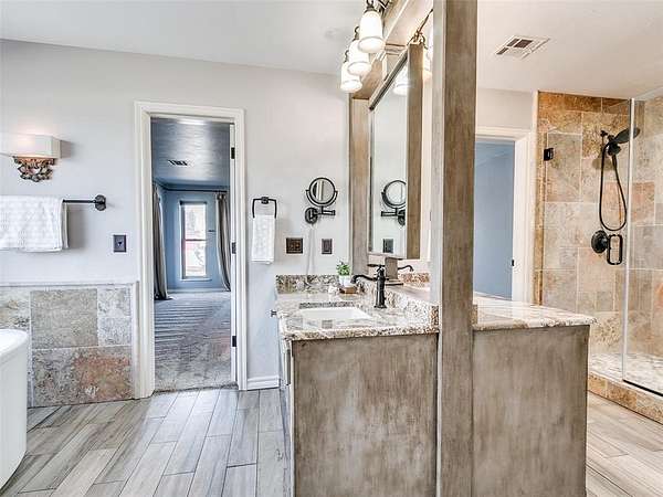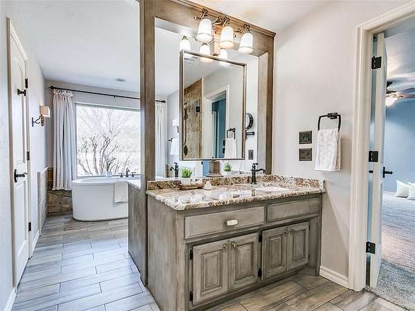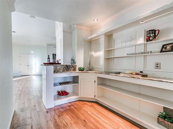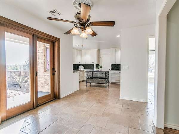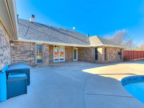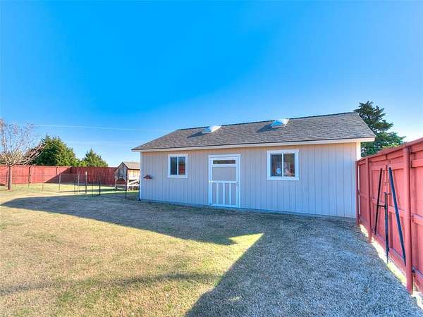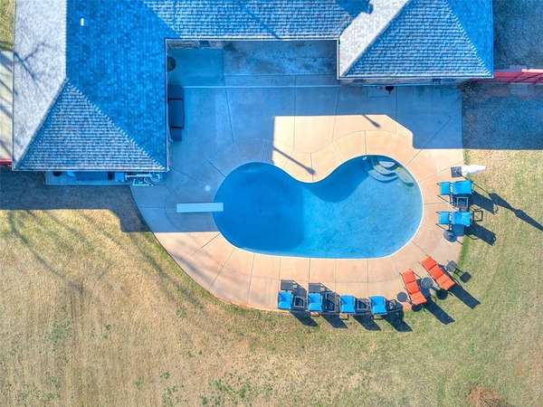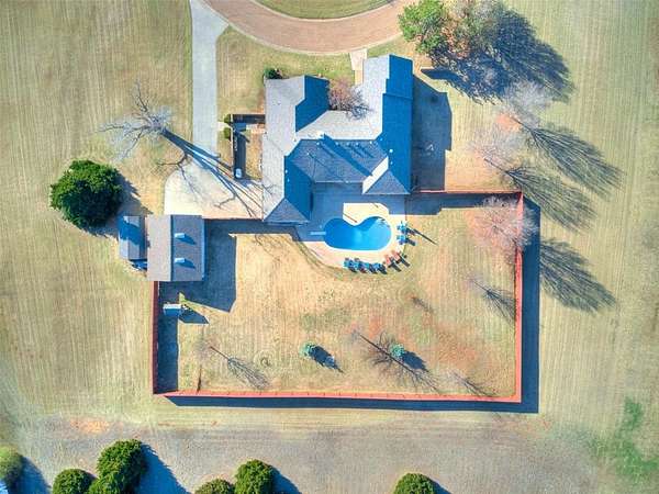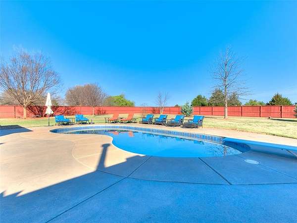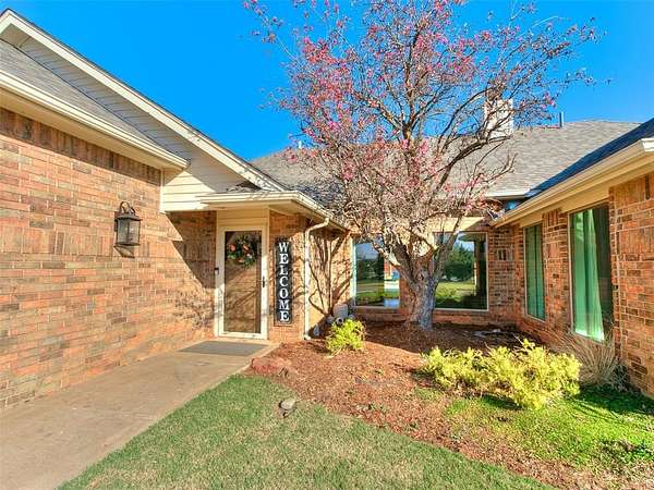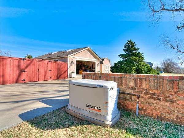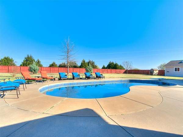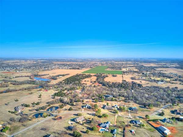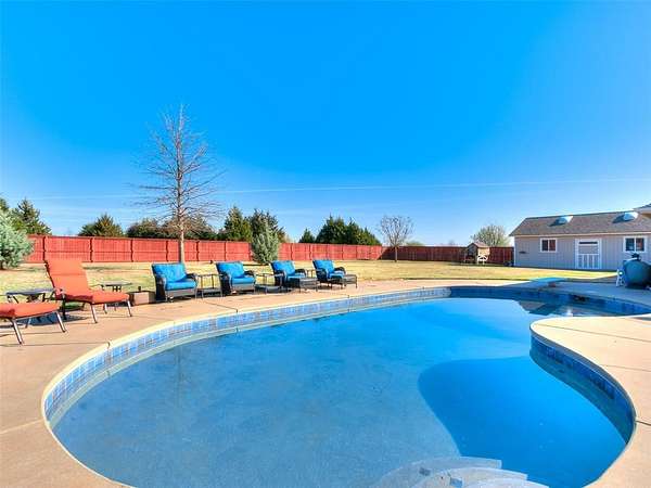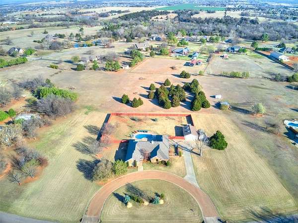 Discover this meticulously maintained hilltop sanctuary on 3.68 acres in prestigious Deer Creek Schools. Positioned to offer stunning panoramic views of vibrant sunrises and glowing Oklahoma sunsets. Experience the perfect blend of country serenity and modern convenience, featuring extensive updates including a brand-new roof and carpet (March 2026). Inside, the chef's kitchen shines with Level 4 granite, granite composite sink, custom cabinetry, gas cooking and travertine flooring, while the primary suite offers a remodel with granite counter tops, shower and soaker tub. The spacious floor plan includes 4 large bedrooms, 3 full baths, 2 living areas, 2 dining areas, 2 wood-burning fireplaces, gas heat and a generous built-in wet bar designed for entertaining. The backyard offers a private outdoor oasis surrounded by stained privacy fencing, features a large back patio and heated pool and serves as the ultimate viewing place, offering a magical, clear view of the starry night sky far from city lights and providing a front-row seat to spectacular 4th of July firework displays right from your own backyard. Practical amenities abound, including professional landscaping, a home generator, Pella windows & doors, storm shelter, a 2+ car workshop with electricity and sky lights, and a chicken coop. The remainder of the lot with trees to the north. This transition ready home includes the kitchen island, stacked washer and dryer, all garage and outbuilding shelving, and pool accessories. After being the current owners beloved home for 34 years, it is ready for its next chapter. From sunup to sundown, this estate offers a lifestyle of peace, privacy, and unparalleled beauty that you have to experience in person. Please ask your Realtor for the complete list of updates, amenities and items remaining with house. Schedule your tour, this exceptional home is ready to welcome you!
