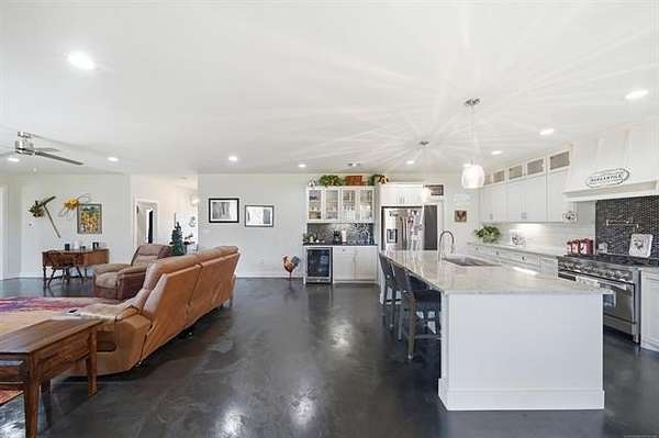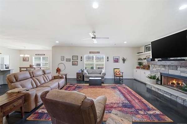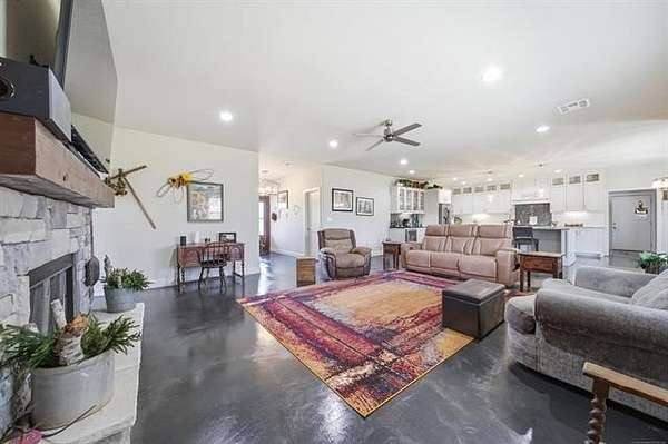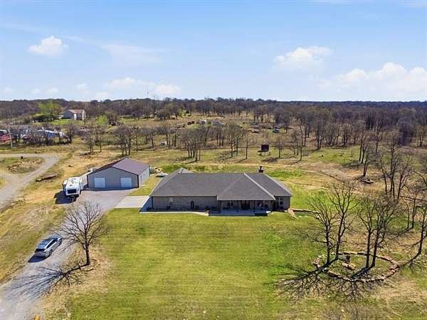 This is it! Quiet country living with modern conveniences located minutes from both Skiatook Lake and the City of Skiatook! Sitting on approximately 2.5 acres, this immaculate home features a flexible open floor plan with 4 bedrooms (office/study could be 5th bedroom), 3 full and 1 half baths, a large utility/mudroom, and much more. The chef's kitchen features a large granite island, gas range, drink fridge, loads of counter and storage space, plus a walk-in pantry. The split bedroom plan features a private primary suite that accommodates king-size furniture with patio access and a spa-like primary bath with double sinks, soaking tub, separate shower, and walk-in closet. There is a second ensuite in the home, perfect for guests or multi-generational living. The custom shop includes 6" concrete floors, 10' ceilings, 220 wiring with 100 AMP service, and two overhead doors. Must See!