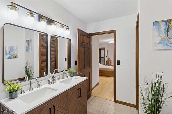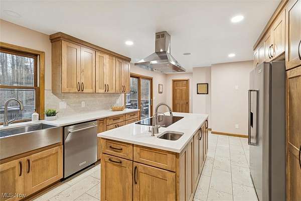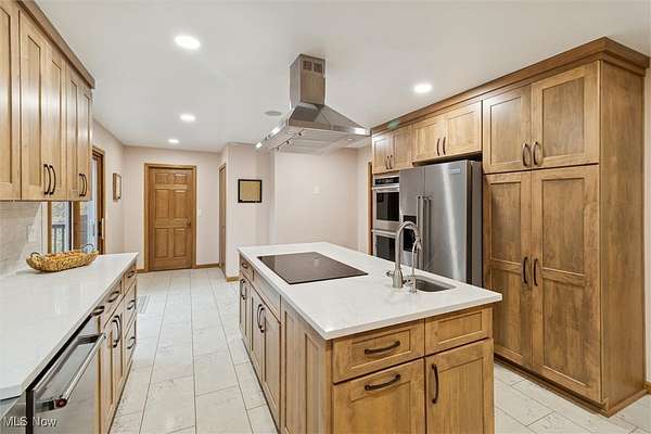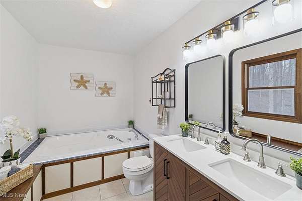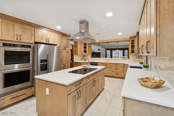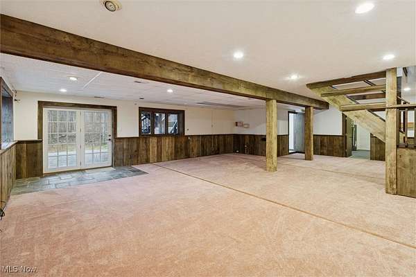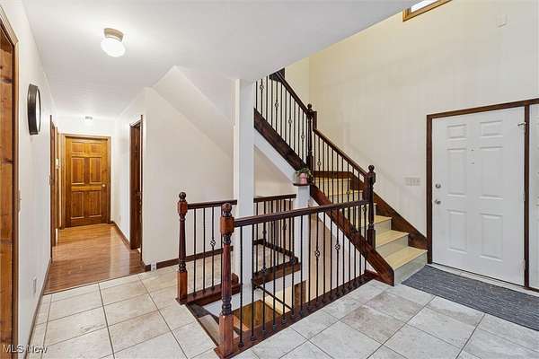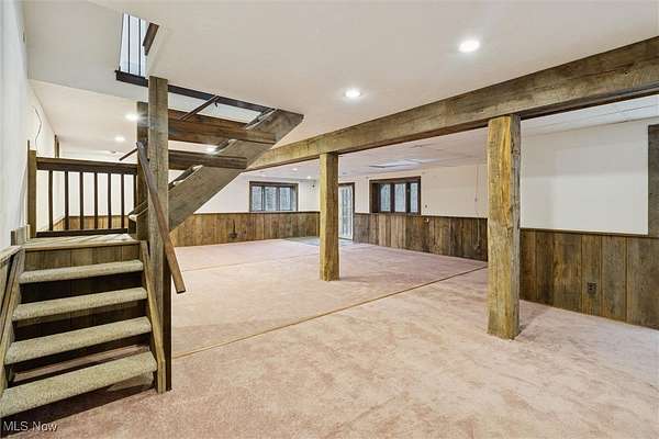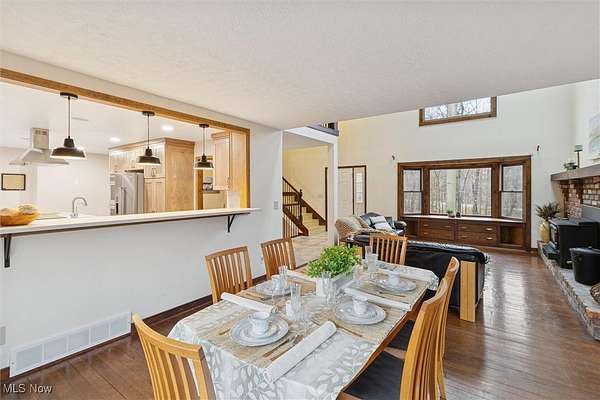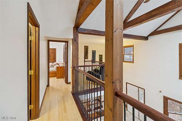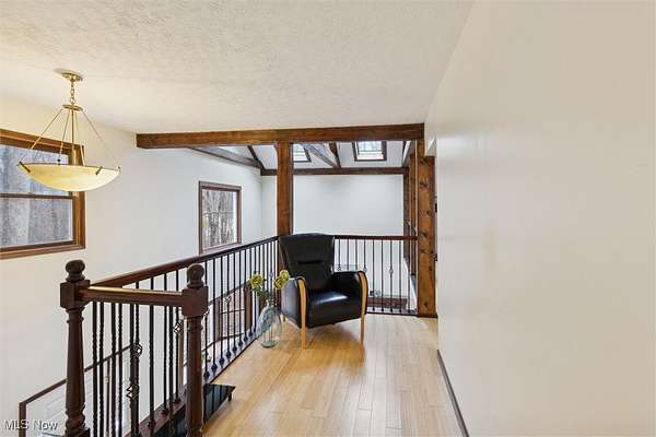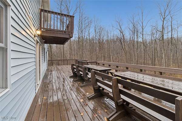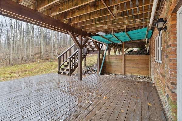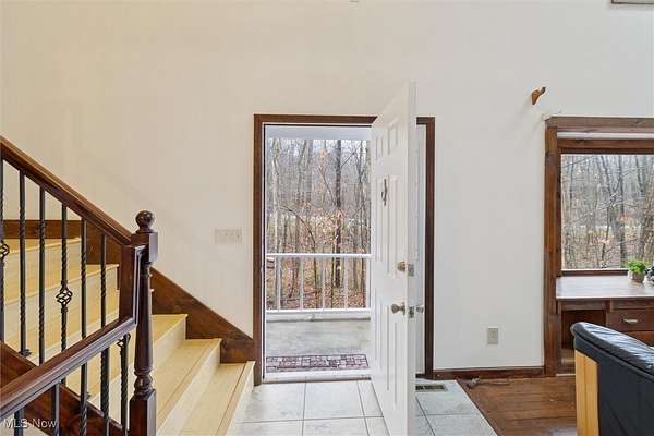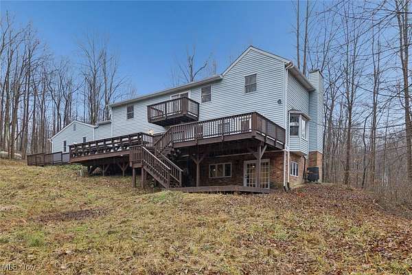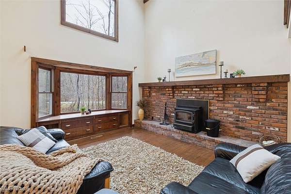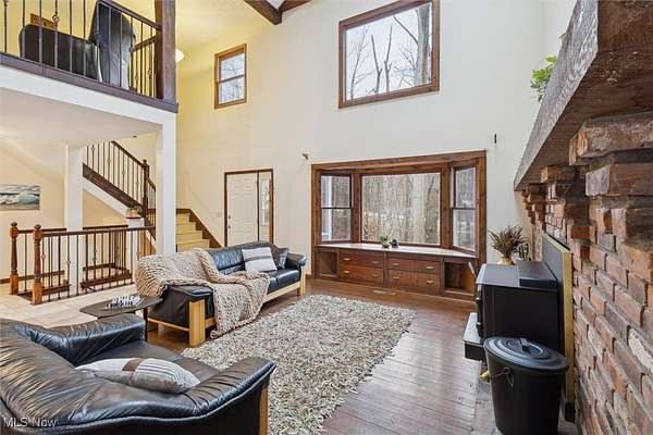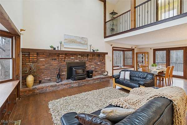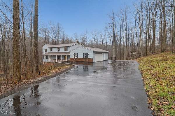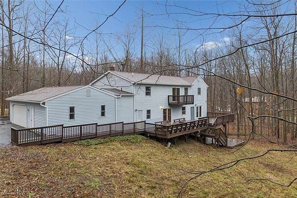 Nestled deep in the woods, ultra-private, and revamped with rustic charm, this stunning Chesterland property is ready for its new family's fresh start. The main entrance is going to impress you with gorgeous woodwork, cozy fireplace, and a massive 2-story ceiling with skylights. The windows are framing the most beautiful picture, no matter the season. The new Upscale Kitchen (2023, $85000 project) is a chief's dream come true: premium cabinetry, Quartz countertops, perfect lighting, double-oven, high-chair bar area with a built-in wine refrigerator and a killer central island with additional sink and range, complete with a new exhaust fan overhead. Top-notch stainless-steel appliances. This property offers 4 bedrooms (1 on the main floor and 3 upstairs), 2 offices on both floors, and 4.5 bathrooms (including 2 in-suit, and 1 powder room for guests on the main floor). The master bedroom has a balcony with yet another great view, and walk-in closet. First floor bedroom could be dedicated to in-laws with main floor office transformed into a walk-in closet. Impressive 2 floors deck was recently stained, and has a sweet covered area near the walk-out basement/family/game room (976 sq ft). A 2 car garage has additional space for your motorcycles, tractor, workshop, storage. From the garage you enter into a sizable hall/mudroom with additional closets and a convenient laundry. The front of the house was updated with additional parking space, and a step-stone suitable for colorful flower pods. Built in 1989, the house has a newer Roof (2023), Septic tank (2022), Electric box/panel (2023). New (2025): Driveway, WT, Water Softener, Several new windows, Master Vanity, and tons of updates in every room, such as paint, light fixtures, ducts, drywall, etc. WEST GEAUGA SCHOOLS. The hillside backyard is a deam come true for kids, it has a space for a trampoline, a zip line, and the playground. The property has 5 acres, and no neighbors behind. Floor plans are available. IDRBNG.