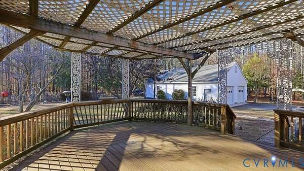 Don't miss this 1 owner ALL Brick, 1 level home built in 1994 on 10 acres in GLEN ALLEN! Country setting yet so close to all amenities! Front yard is open with lots of grass & some woods, rear is all wooded. The home has an attached 2.5 car garage, a detached 3 car garage (48 x 28) w/storage above, + a 16x14 detached shed. Entry foyer with coat closet opens to formal living rm which continues into dining rm. Hardwoods are beautifully maintained & thru all living areas (protected w/custom sized carpets), tile in baths, & vinyl in laundry rm. Rear of home is one very large open space connecting the kitchen w/ island & granite tops + 6' pantry closet (!!) to the dinette area w/bay window & family rm with full chimney yet converted to gas (never used per seller). The custom made cherry kitchen cabinets match the dinette hutch which conveys, & the fireplace mantel. The sunroom (not in SF-has no AC/Heat) is beyond the family rm & opens to a 17.5 x 15.2 deck with pergola above. On the opposite side of the kitchen is the laundry rm which also houses the approximately 5 year old furnace, laundry sink & private half bath. The HVAC compressor outside was also replaced about 5 years ago. Heating is electric with oil back up. ALL PLUMBING PIPES were replaced 2-3 years ago. Water Heater new 2.27.2020. Roof is original - seller had a roofer check it & was told no replacement is needed & still in good shape. The bedrms are all off the main hall on the left side of home, each with really nice sized closets. Large Primary bedrm with private bath & walk in closet. Beds 2 & 3 share hall bath with 52" wide vanity & 4.5 x 2.5' linen closet & a door for privacy to the commode and 2 shower areas, both a porcelain tub with shower + a stand alone shower with glass enclosure! Adorable 5 shelf inset built in bookcase feature in main hall + another linen closet, along with whole house fan & pull down attic w/floored storage. HOA-only $300/year, run by neighbors & mostly for road maintenance which was just patched & resurfaced in 2024.