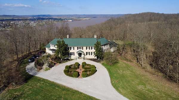 They say heaven is a Kentucky kinda place! Here is a rare opportunity to own one of Northern Kentucky's most unique and beautiful private estates. 83 acres of privacy and Ohio River views. Timeless charm throughout this 9000+ sqft home with 6 bedrooms, 5 full baths, completely renovated kitchen, bedroom balconies, 3 fireplaces, library, and details you rarely see in new homes. There are 2 barns and an additional outbuilding. Pond with a dock. Home generator. Water treatment system. Seller has maintained consisted service on mechanics of this home. This home is truly spectacular!