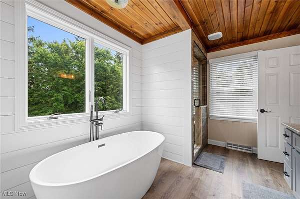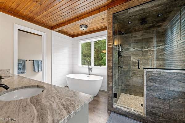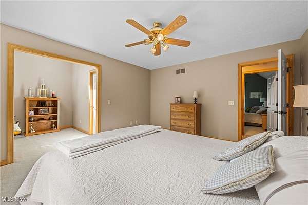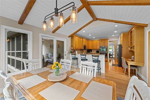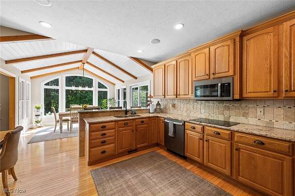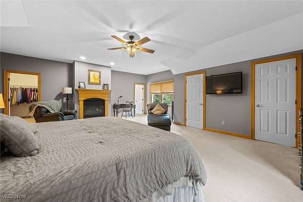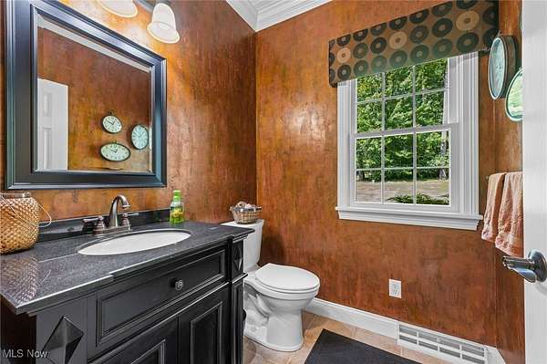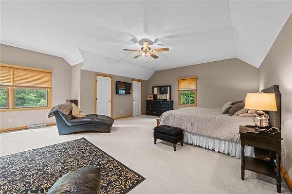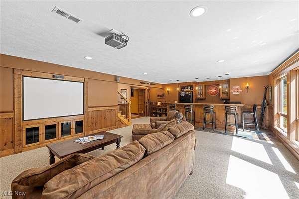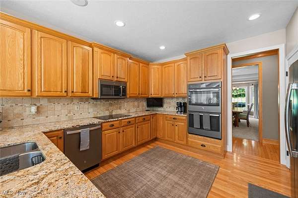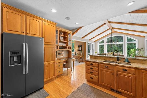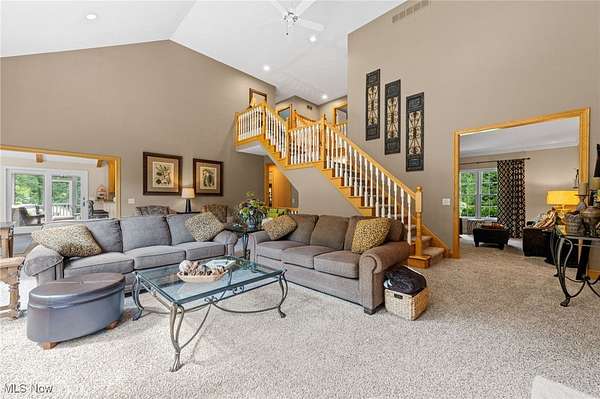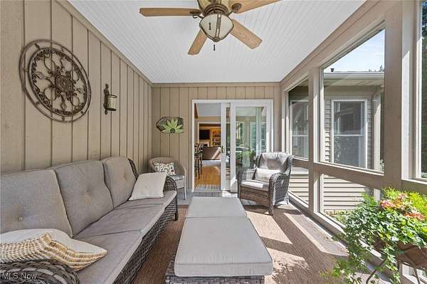 INCREDIBLE Custom Built Home situated on 2.5+ Private Wooded Acres and borders Chardon Lakes Golf Course! Builders personal home was thoughtfully designed and quality-built with over 5800 sqft of finished living space, gorgeous woodwork and tasteful neutral decor throughout! The covered front entry and foyer welcomes you with hardwood floors and opens to both Spacious Formal Dining Room and Living Room. Vaulted Great Room with wall of windows, gas fireplace flanked by built-in bookshelves/cabinetry and 2nd staircase to upper level. The Gourmet Kitchen is beautifully appointed with abundance of cabinets, granite counters, breakfast bar, newer stainless steel appliances, built-in desk, pantry and hardwood floors. Bright & light Breakfast Room with vaulted beamed ceiling & sliders to 3-Season Sunroom to enjoy peaceful views with your morning coffee. Retreat to the Master Bedroom Suite with fireplace, walk-in closet & Remodeled Master Bath with tongue & groove wood ceiling, double sink granite vanity, oversized ceramic spa shower & freestanding soaking tub. Second floor also includes 3 additional generous sized bedrooms with great closet space & full bath to share. 1st floor laundry room, mudroom and half bath complete the main level. Finished walk-out lower level is made for entertaining with a large Rec Room and bar, with wall of windows and patio access, built-in media center, gaming area, bath, separate office and walk-up garage access. New high-efficiency furnace 2025 & HWT 2024. Relax or host on the multiple stamped concrete patios overlooking the beautifully landscaped yard with manicured beds, lush plantings & surrounded by mature trees for added privacy. 3+car attached garage with freshly paved driveway. Meticulously maintained inside & out...must see to appreciate all this home has to offer!
