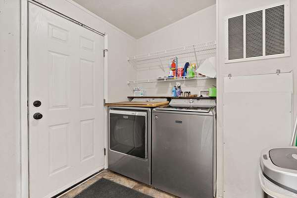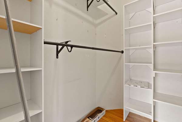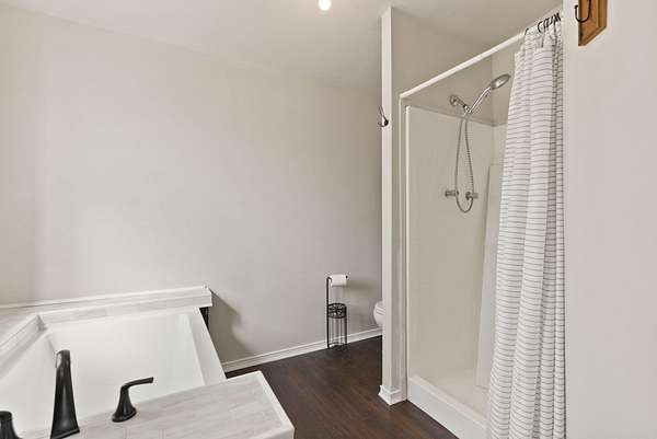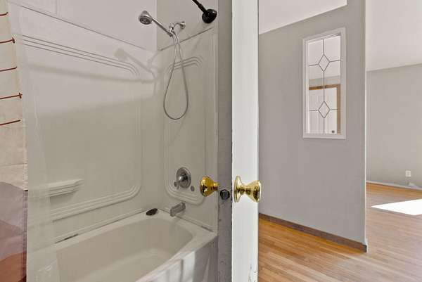 - Fiberglass Stall Shower, Kitchen Island, Laminate Counters, Open Floorplan, Pantry, Primary Downstairs, Shower/Tub Combo, Walk-In Closet(s)