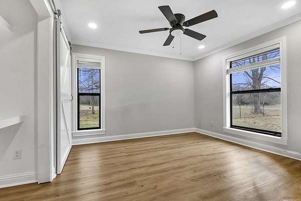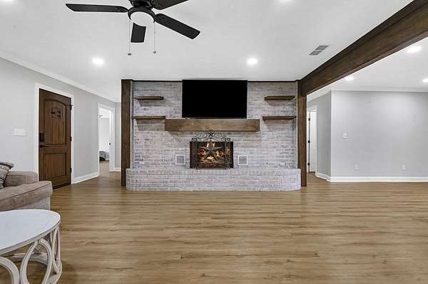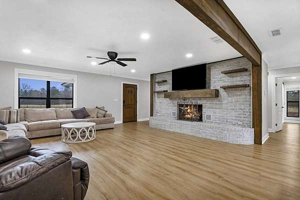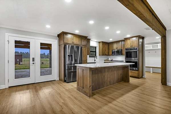 Est $2,872/moA beautifully remodeled 4-bedroom, 3-bath home set on 5 serene acres, offering privacy, comfort, and modern luxury. The spacious living area features an elegant fireplace and flows into an updated kitchen with premium finishes. The luxurious master suite includes a spa-style bath with a walk-in shower, soaking tub, and upgraded fixtures. Additional bedrooms are generously sized, and all baths are tastefully updated. A whole-house generator provides peace of mind, while numerous upgrades--new flooring, lighting, and systems--make the home truly move-in ready. Located in a highly rated school district, this property blends refined living with country tranquility.
