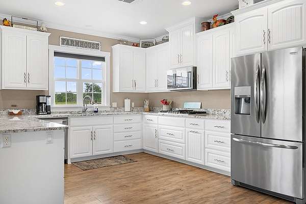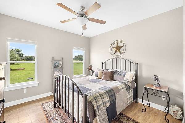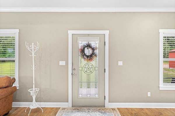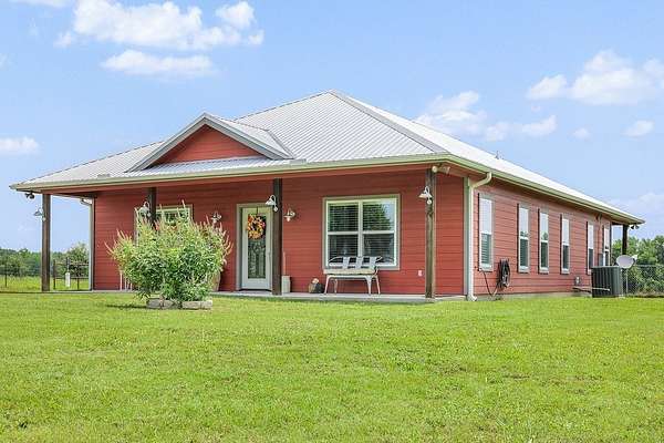 Welcome to your private sanctuary nestled in the heart of nature. This immaculate three bedroom, two bathroom home is situated on a sprawling 12.93 acres of picturesque wooded land, offering an opportunity for peaceful country living and wildlife. Step inside this beautiful home, where natural light floods the entire home, creating an inviting and warm atmosphere. The heart of the home is the stylish kitchen with generous counter space, a cozy dining area and the spacious layout is perfect for family gatherings or entertaining friends. While all three bedrooms have blackout cellular shades, have peace of mind your guests can sleep any time of the day. The expansive fenced backyard is a safe haven for children and pets to play freely. Enjoy the covered front and back porches for your morning coffee while watching the deer graze nearby! The property features a charming cabin perfect for a home office or visiting guests. The wildlife exemption is a bonus to lowering your taxes!