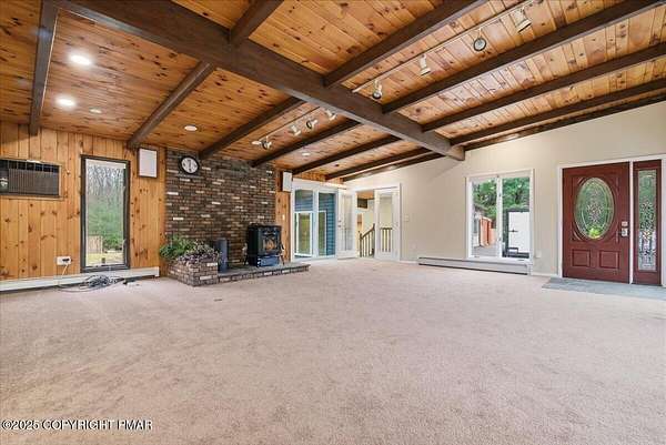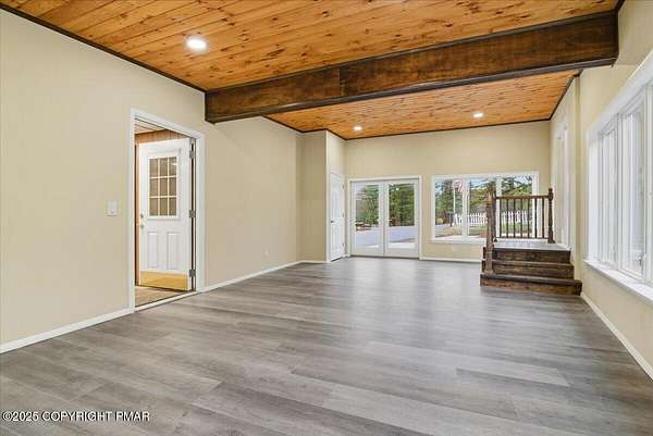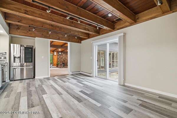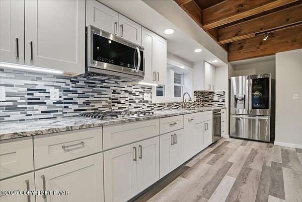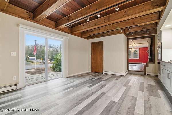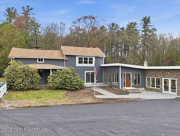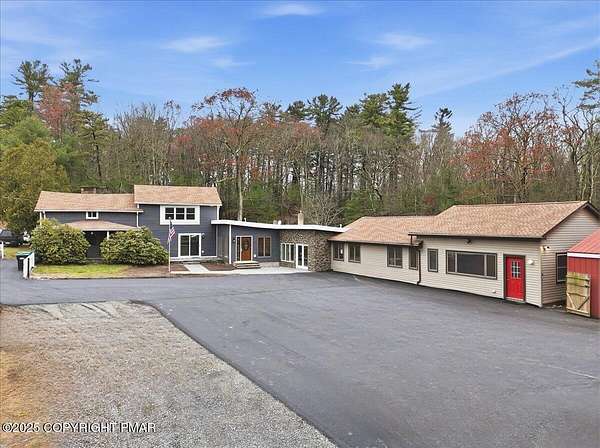 Welcome to your completely remodeled, multi-wing Milford retreat, where comfort meets flexibility. Set on 1.62 acres bordering state game lands, this 6-bedroom, 4-bath home has been transformed from top to bottom so you can move in with ease and start your plan B almost immediately. Local zoning supports accessory living, transient lodging, and home-based business use. With a luxurious kitchen in the main house, a practical kitchenette, and two laundry rooms, the layout is ideal for a mother-daughter setup, multi-generational living, or a primary residence with multiple income-producing options. Every renovation was completed with integrity and attention to detail: a new state-of-the-art septic system servicing the entire property, new roof and siding, a newly paved driveway with ample parking, brand-new water heater, generators and a beautiful new connector room that unites the home's wings seamlessly. Every appliance, fixture, and finish - from flooring and carpeting to lighting and paint is new. Every system was upgraded or replaced; not a stone was left unturned. Step into the original farmhouse and you'll feel the charm of history preserved: the original stone floor, exposed beams, and a classic stone hearth fully inspected and ready for cozy fires. Upstairs are two private bedrooms, a full bath, and generous storage the perfect tucked-away quarters for Bed-and-Breakfast guests or friends visiting the Poconos for the weekend. The main kitchen is a true centerpiece: white shaker cabinetry, granite countertops, mosaic tile backsplash, double ovens, gas range, LG energy-efficient appliances, and a walk-in pantry. Sliding doors open to a front stone patio, while beamed ceilings and layered lighting make this space the bright, welcoming heart of the home. Off the kitchen, a flexible room with high ceilings, its own bath, and laundry area can serve as a home office, classroom, studio, or guest suite Beyond that, the massive family room features a brand-new pellet-burning stove, walls of windows, and a vaulted ceiling. The large primary bedroom with ensuite bath has its own soaking tub overlooking the back yard, shower, double vanity, and custom built-ins. The new connector wing flows effortlessly into the second living area, complete with its own split HVAC unit for efficiency and comfort. This bright, open space serves beautifully as a guest entrance, office, or sitting room for the three attached guest bedrooms, fourth bath, compact kitchenette with dishwasher and refrigerator, and separate laundry. Outside, the property unfolds into a landscaped yard overlooking a peaceful woodland stream - private, natural, and perfect for gatherings. Multiple patios invite outdoor dining or future event hosting. The detached pole barn features a concrete floor, is fully wired for electricity, and offers flexible use as a workshop, garage, or storage for tools and toys. While perfect as a private residence, this property's approved zoning for Lodging/Transient use (LOD) and ideal location, only minutes from the I-84, Milford Center, New York and New Jersey, make it far more than a home; it's an opportunity for a whole new life! Live here full-time, host guests, operate a boutique inn, or simply generate income on your terms. If you're ready for a life-changing switch one that offers everyday comfort and built-in potential welcome home. Live beautifully. Earn quietly. Expand intentionally.