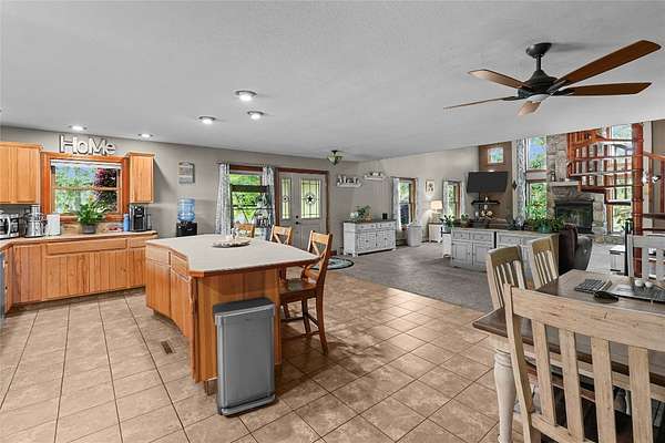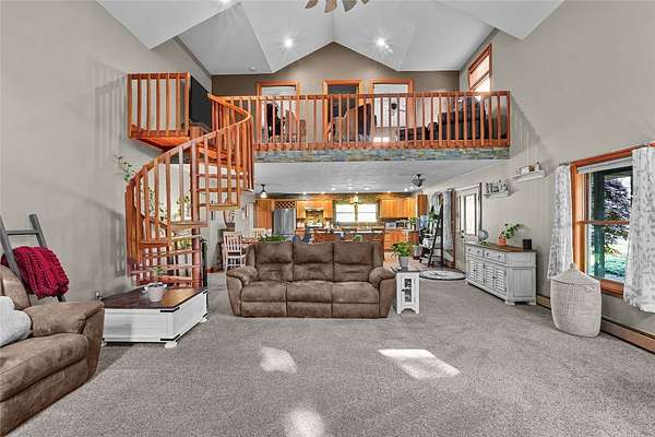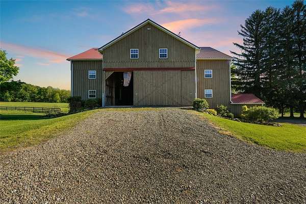 This isn't just a dream home-it's your full-blown lifestyle upgrade. On 20 Acres, this beautifully updated and meticulously maintained Waterford haven offers over 2,500 sq ft of living space, plus nearly 1,700 sq ft of finished basement with a full bar lounge. Watch the sunsets in your soaring great room anchored by a stunning stone fireplace and spiral staircase that leads to a loft area with 2 bedrooms and a full bath! The massive 65'x140' heated warehouse is a business owner's and equestrian lover's dream, ready for equipment, inventory, or creative ventures. Outside, the 72'x88' 3-level barn offers a 21 stall capacity, a tack room, and sawdust room. Ride indoors year-round in your private arena or roam 5 acres of fenced pasture! There's even a spring-fed pond, fresh landscaping, and plenty of parking. Horse lovers, hobbyists, and entrepreneurs-this is your rare chance to have it all. Schedule a showing today! See attached sheet for recent updates and specs!
