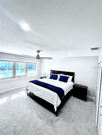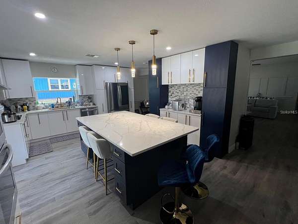 The main house features a fully remodeled kitchen with quartz countertops, 3 bedrooms, and 3 full bathrooms, including a convenient pool bath. Enjoy an oversized family room with a cozy fireplace, perfect for gatherings and memorable moments.