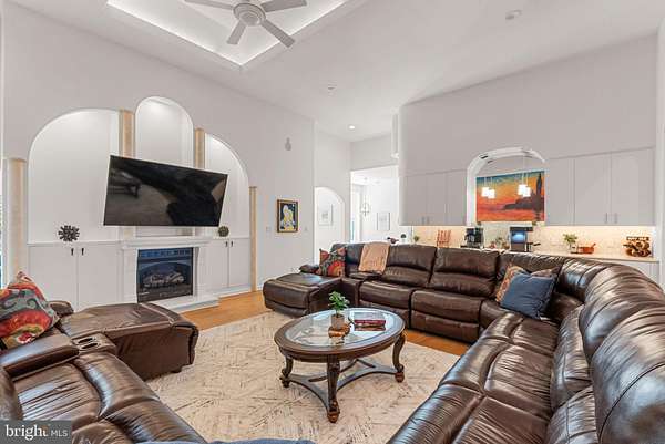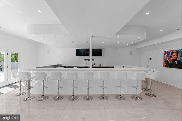 From the moment you arrive, this stunning Mediterranean-style estate commands attention. A grand circular drive with a tiered fountain welcomes you home, while the signature Brava tile roof, columned portico, and manicured grounds set the tone for the extraordinary lifestyle within. Perfectly positioned just a golf cart ride from the Fredericksburg Country Club, this is resort living at its finest. Step inside to soaring ceilings finished in flawless Level 5 drywall, rich engineered hardwood floors, and a light-filled layout designed for both grand entertaining and refined everyday living. The chef's kitchen is a culinary showpiece anchored by a Thermador 48" double-oven gas range, Sub-Zero refrigeration, gleaming quartz countertops, and custom cabinetry all framed by a designer tile backsplash and statement pendant lighting. A serene sunroom flows seamlessly to the glass-lined patio, where panoramic fairway views of your land provide a breathtaking backdrop for morning coffee or sunset cocktails. The main level hosts two primary suites, including a jaw-dropping owner's retreat with a spa bath centered around an 11*5 ft rainfall shower - a true sanctuary. Every detail, from the premium insulation to the bespoke finishes, reflects uncompromising craftsmanship. Take the private elevator down to a lower level that rivals the finest private clubs. The crown jewel is a fully appointed private cinema - featuring tiered leather reclining seating, a ceiling-mounted projector, massive projection screen, dramatic blue ambient lighting, and acoustically engineered walls with integrated LED accents. Movie nights will never be the same. A temperature-controlled wine room encased in glass showcases your collection in spectacular fashion. Gather at the 18-seat curved bar for game day, challenge friends at the billiards table, train in the glass-door private gym, or retreat to one of two additional bedrooms or the third full primary suite - all finished with the same impeccable custom design found throughout. Outside, the resort-style backyard is nothing short of extraordinary. The grand saltwater zero-entry pool - powered by three heat pumps and framed by a mosaic-tiled spa - features an integrated 5-seat swim-up bar, in-water lounge chairs, and cascading water features, all set against a lush, private tree line. When the sun goes down, 7 Pentair IntelliBrite color LED lights transform the pool into a mesmerizing light show, syncing color and movement to set the perfect mood for any occasion - from intimate evenings to full-scale pool parties. The entire home is wired with a Control4 whole-home audio system, bringing the perfect soundtrack to every room, every gathering, every moment. If this home is calling you, come tour today.