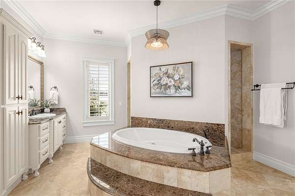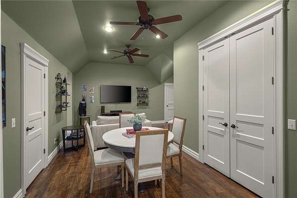 - Attic, Built In Features, Cathedral Ceilings, Ceiling Fans, Central Vacuum, Eat In Kitchen, Granite Counters, Multiple Living Areas, Pantry, Walk In Closets, Wet Bar, Window Treatments, Wired For Sound