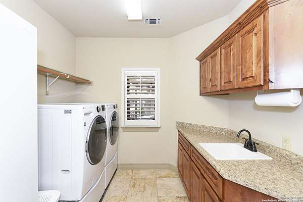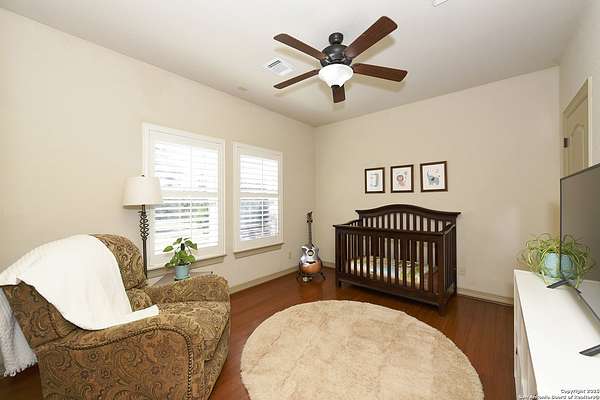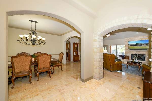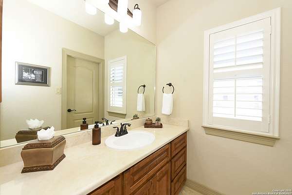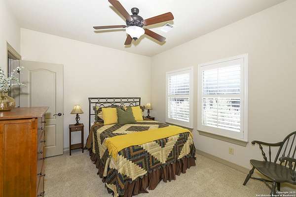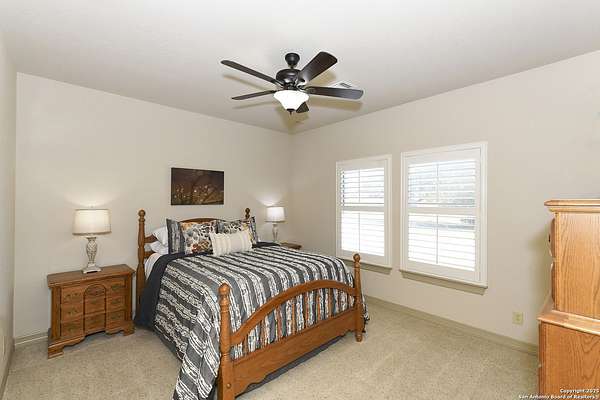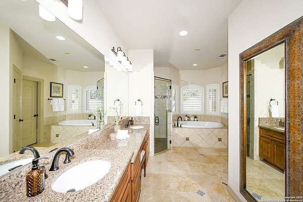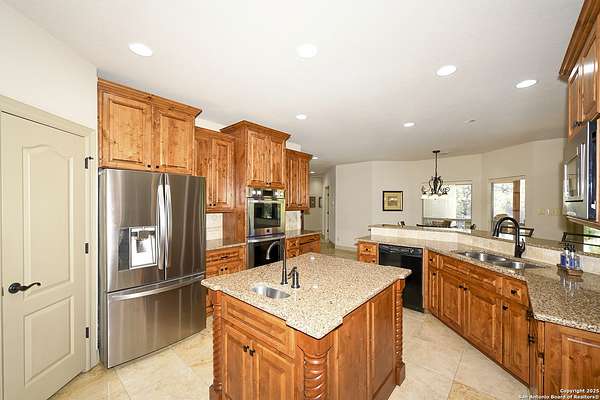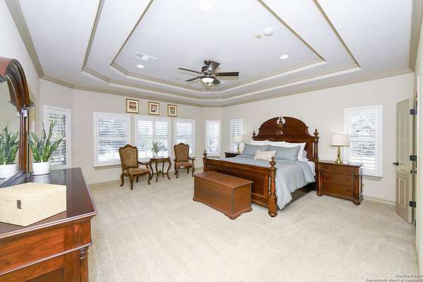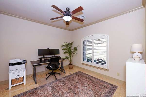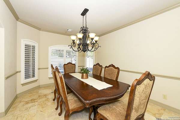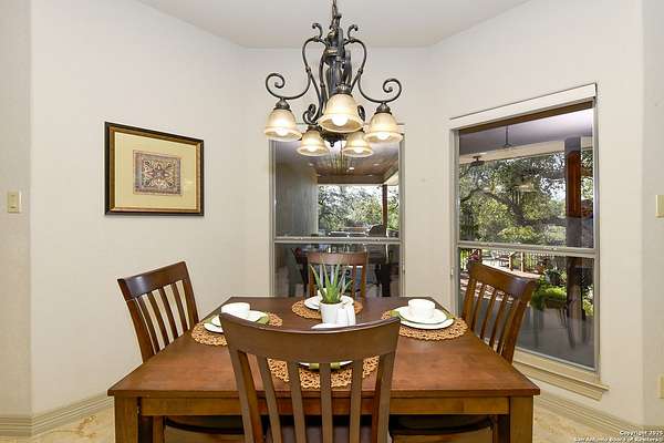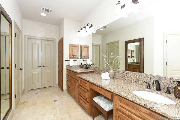 Rare opportunity for Hill Country living on 2.67 acres in The Heights at Comal Trace! Homes in this section rarely come on the market, making this a unique chance to own a custom single-story home in one of Comal County's most desirable locations. Nestled at the back of the community, the property offers exceptional privacy while keeping you close to shopping and dining. Surrounded by mature oaks and a wooded greenbelt, the setting feels like a Hill Country retreat with abundant wildlife including deer and turkey. The open-concept layout features 4 bedrooms plus an office, 3.5 baths, and abundant natural light. The chef's kitchen is a true centerpiece with an oversized island, gas cooktop, double ovens, and walk-in pantry, flowing into a spacious living area with Austin stone accents and a wood-burning fireplace with gas starter. Elegant finishes include polished travertine tile, plantation shutters, and large windows framing serene views. The primary suite offers porch access and a spa-inspired bath with jetted tub, walk-in shower, and dual walk-in closets. Secondary bedrooms provide generous storage, including two walk-ins, and one features bamboo flooring ideal for a craft or art space. The laundry room includes a utility sink, built-in ironing board, space for an extra refrigerator or freezer, and a walk-in storage closet. Outdoor living shines with a covered porch, composite deck, oversized flagstone patio, and a large deer-proof fenced garden with raised beds and timed irrigation. The whimsical flagstone drainage feature adds charm. The 3-car garage includes a workbench, and the extended, widened driveway offers extra parking and RV-friendly features including a 30-amp outlet for convenient trip preparation. Plenty of room to add a pool, RV garage, or casita (subject to ACC approval). This property blends Hill Country charm with modern convenience-a rare find in Comal County!