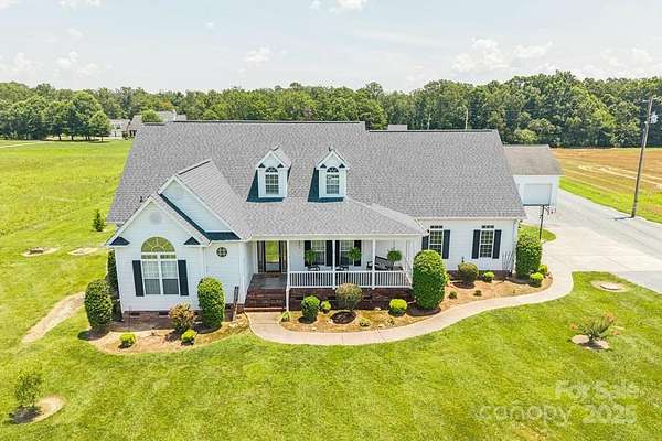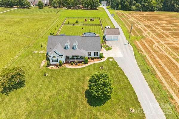 Peaceful country living awaits on this charming and spacious 2-acre property, offering room to grow and endless possibilities for expansion. This move-in ready home features a split bedroom plan with 3 bedrooms and 2.5 baths on the main level, including a main-level primary suite. Upstairs offers a private bedroom with ensuite bath, home office, oversized bonus room, and a 498 sq ft unfinished walk-in attic with interior stair access. The oversized attached garage includes two walk-in storage areas, while the detached 24x24 two-story garage with electricity is perfect for a workshop, studio, or future build-out. Enjoy outdoor living with covered front and rear porches, an above-ground pool, and a fully fenced backyard. A separate fenced area is ideal for a garden or small pasture. Roof replaced in 2020. Just minutes from Hwy 74 and the Monroe Expressway. Qualified buyers may receive $3,000 in lender-paid credits with seller's preferred lender!