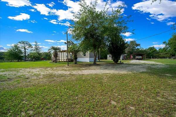 Discover the perfect blend of rural living and comfort on this 3.41-acre agricultural-zoned property in the heart of Belleview, Florida. Ideal for those looking to enjoy a peaceful country lifestyle and have your own mini farm; this property offers plenty of space for horses, farm animals such as donkeys, cows, lambs, sheep, chickens; gardens, or even a small hobby farm. The home is a 2021 manufactured/mobile home featuring a spacious 3-bedroom, 2-bathroom layout. With an open-concept design, it offers a bright and welcoming living space, ideal for both family living and entertaining. Step outside to enjoy the covered back porch, perfect for relaxing evenings overlooking the open land and nature. Whether you're enjoying your morning coffee or watching the sunset, this space offers a serene retreat. With ample room for barns, sheds, or additional structures, the land provides endless possibilities for animal lovers, homesteaders, or those simply wanting space and privacy. Citrus & fruit trees, Corral for pigs & goats, Access to water for animals or gardening. As a bonus, the property is located near a lake, and for a small annual fee, you can enjoy access to a private boat ramp--ideal for boating, fishing, and weekend relaxation. Call Today for a private showing