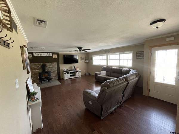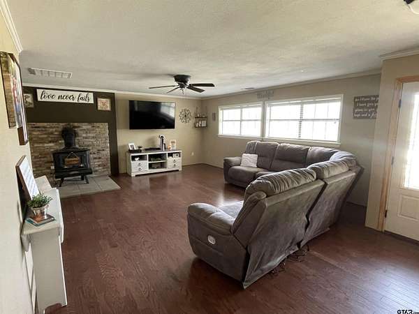 Charming brick home on 2.6+ acres that lives much larger thanks to the surrounding large tracts of land -- giving you privacy, peaceful views with sunsets, and that true "out in the country" feel. This inviting 3 bedroom, 2 bath home offers a warm, comfortable layout with a cozy wood stove and a huge flex space at the back -- perfect for a second living area, game room, office, or hobby space. The property includes a garage, partial fencing, and ample room to spread out. Major updates are already in place, including a brand new HVAC system (interior and exterior units), all new interior doors, and some updated trim. The home does need some work, making it a great opportunity for buyers who want to add their own style and build equity. Ideally located between Mineola and Quitman and within MISD, this property offers the best of country living with convenience to town. Come enjoy this brick home with plenty of space for animals, a garden, or simply enjoying the wide-open feel.