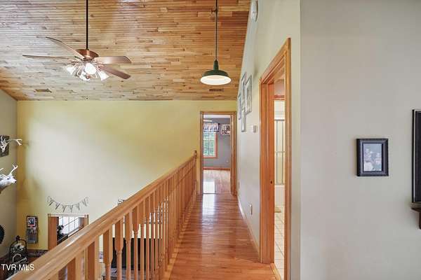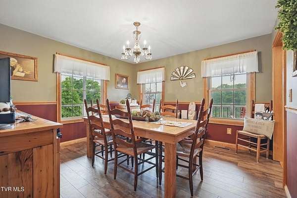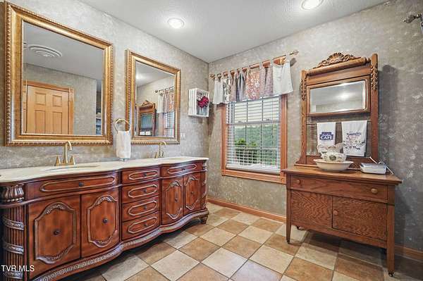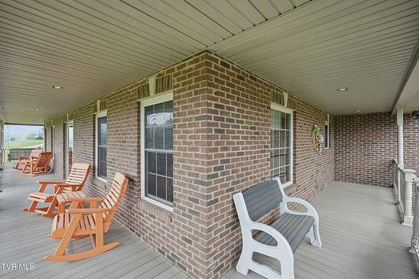 Custom-built home on 5 acres with Mountain Views and your very own hunting cabin! Every inch of this property was thoughtfully designed, from the custom roof trusses to the poured concrete basement wall, and even hurricane rated windows in the sunroom. Even the smallest details, like the layout of the wiring, were taken into consideration in building this one-of-a-kind 3 bed, 2.5 bath home. The main level features a vaulted ceiling living room, sunroom, spacious kitchen with custom cabinets and granite countertops, a large laundry/mudroom, and a 2-car garage with an unfinished bonus room above. The Primary suite is also located on the main level and features a walk-in closet with custom shelving, dual sinks, and a walk-in shower. Upstairs there are 2 more spacious Bedrooms, a full Bathroom, and a walkway overlooking the Living Room below. The covered wraparound front porch overlooks the extensive landscaping and creek at the bottom of the property. The full basement offers plenty of additional space with a large workshop, second garage, and tons of storage. The exterior materials are virtually maintenance-free consisting of brick, vinyl, aluminum, and composite decking. Located in Bluff City with room to roam, this home blends craftsmanship with function in all the best ways. Additional construction details are available - Agents see docs for a detailed list.