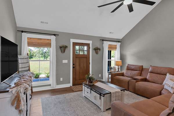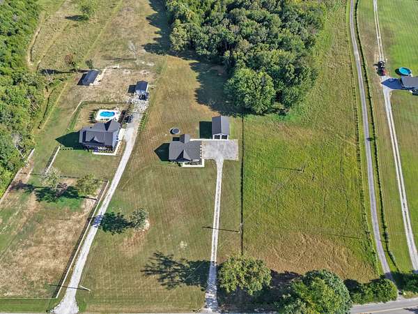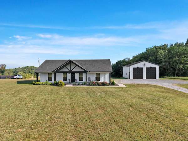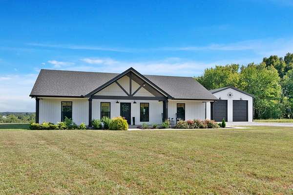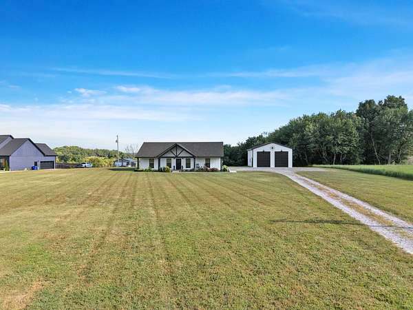 Welcome to this stunning 2021-built farmhouse-style home nestled on 5.25 serene acres, offering the perfect blend of modern comfort and country charm. Featuring 3 spacious bedrooms and 2 full baths, this home offers an open floor plan that invites natural light and effortless flow--ideal for everyday living and entertaining.