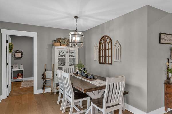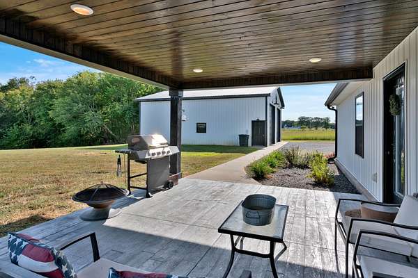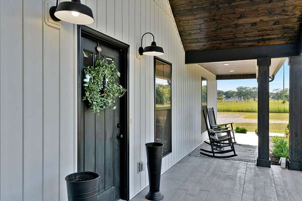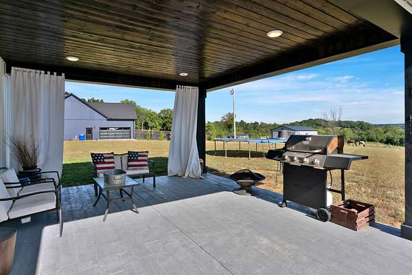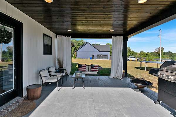 Enjoy peaceful mornings on the inviting covered front porch, and host unforgettable gatherings on the stamped concrete back patio--both adorned with beautiful wood ceilings that elevate the home's rustic elegance.