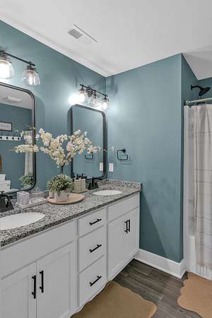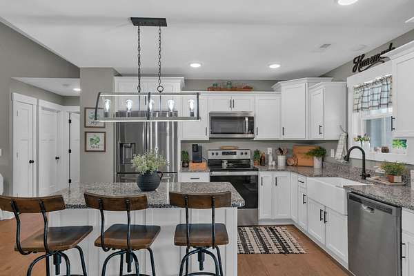 The thoughtfully designed split-bedroom layout provides privacy with the spacious primary suite located opposite the secondary bedrooms. The primary retreat includes a full bath with double vanities and a walk-in closet.