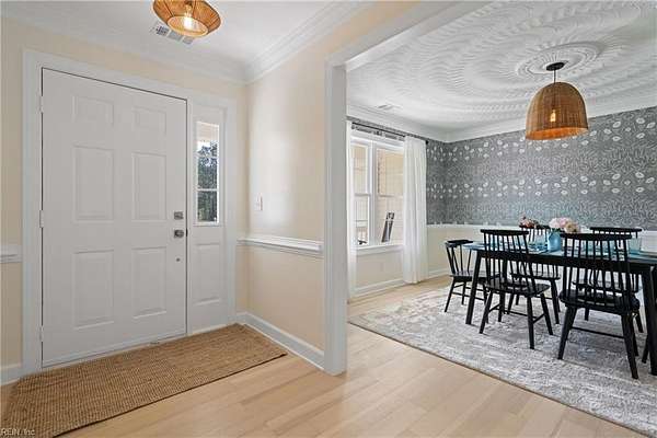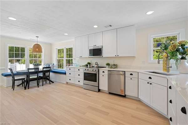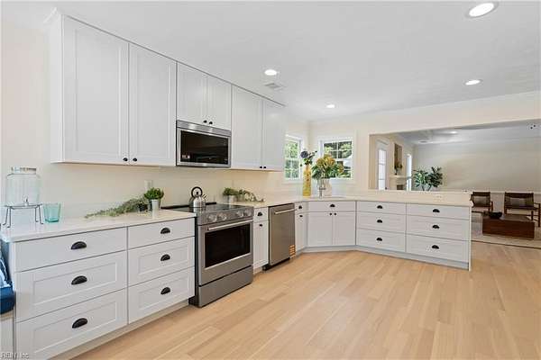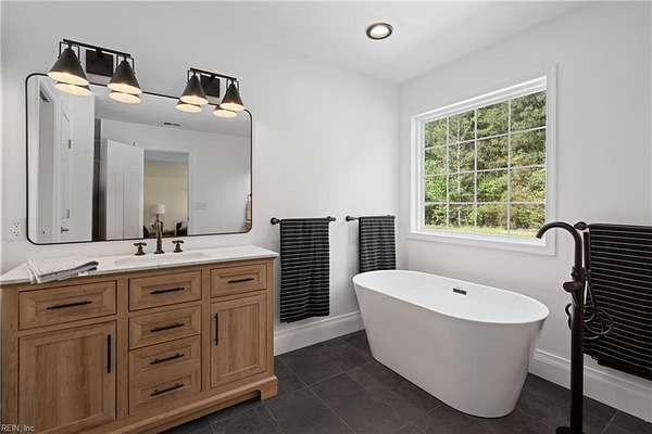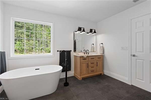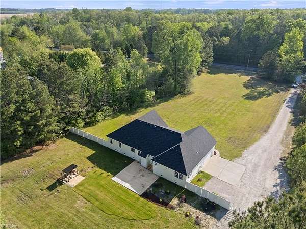 Set on over 3 acres and tucked back from the road, this meticulously updated 4-bedroom, 3.5-bath Chesapeake property offers a rare blend of space, privacy, and modern finishes. Renovated with care and attention to detail, updates include a new roof, all-new kitchen cabinetry, upgraded stainless steel appliances, quartz countertops, engineered hardwood flooring, fresh paint, and beautifully redesigned bathrooms with custom tile. The spacious first-floor primary suite adds convenience, while a second ensuite offers flexibility. Enjoy a welcoming front porch and a new back patio overlooking a privacy-fenced yard backing to wooded views. Ample closet space and storage throughout, plus a 2-car attached garage. Move-in ready with a unique combination of land and updates.
