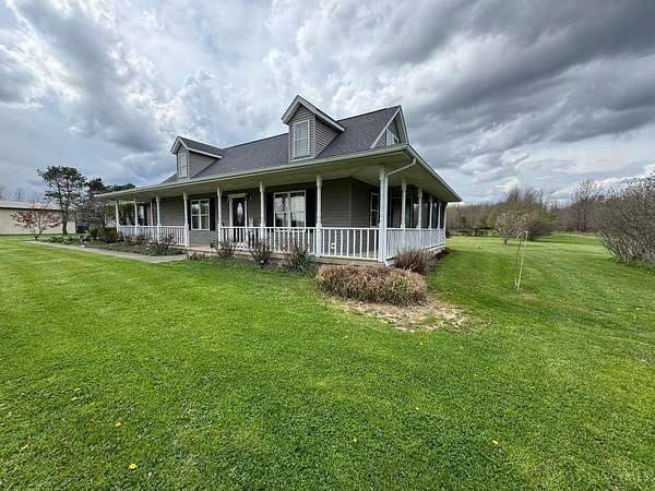 This 2350 square feet custom-built Cape Cod sits gracefully on 5 private acres, complete with a picturesque pond that creates a peaceful, country setting. A welcoming full-length front porch with a screened in area sets the tone for relaxed living while the blacktop driveway leads to both an over sized attached garage and an impressive 20X40 detached garage which includes 200 sq ft of finished space-perfect for hobbies, storage or a workshop. The home offers 3 spacious bedrooms and 2 full baths, thoughtfully designed for comfort and functionality. The kitchen has an abundance of wood cabinets and a newer quartz counter top. The bright sun room provides the perfect spot to enjoy morning coffee with serene views. With its classic Cape Cod charm, modern conveniences and expansive outdoor setting, this property offers the perfect blend of privacy, practicality and timeless style.
