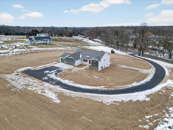 Here's your chance to own one of Sable Homes' award winning MOVE IN READY Bayberry Ranch homes on 3 acres! This home has everything you've been looking for. A full stainless kitchen appliance package; dishwasher, range, hood vent and refrigerator - 3 bedrooms on the main floor, including a primary with a private bath, walk-in closet, tile shower, and double sinks. The remaining main floor features beautiful arches leading to the dining room, 9 foot ceilings, another full bath, and main floor laundry, 16x16 Four Season, and a 16X14 Deck with Stairs. Lower level walkout offers a fully finished family room and gorgeous fireplace! Enjoy a brand new home!