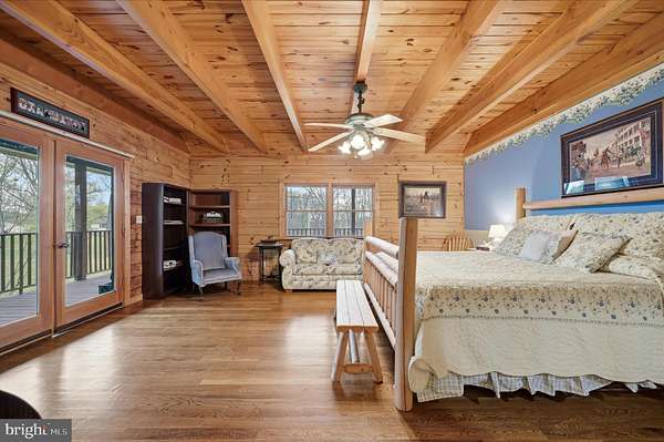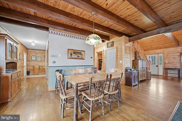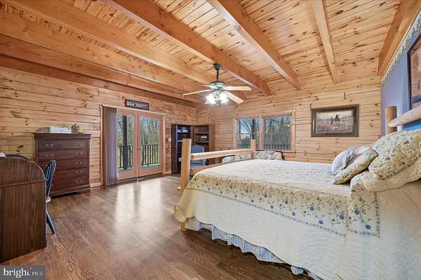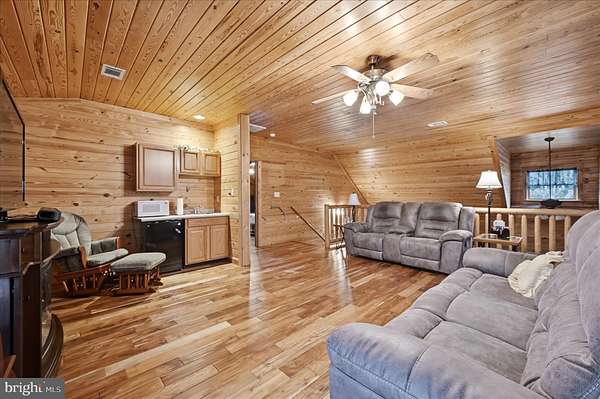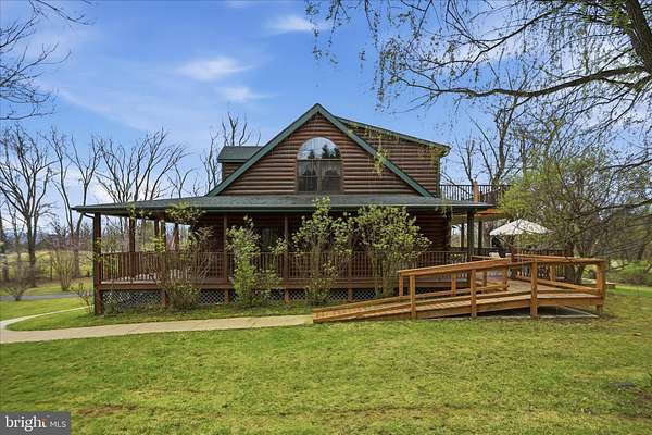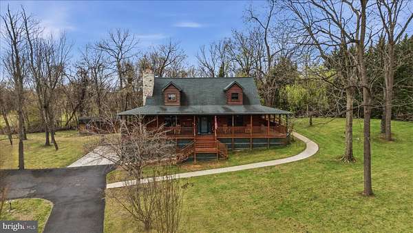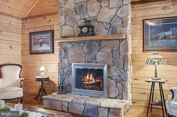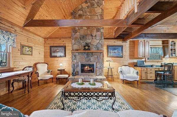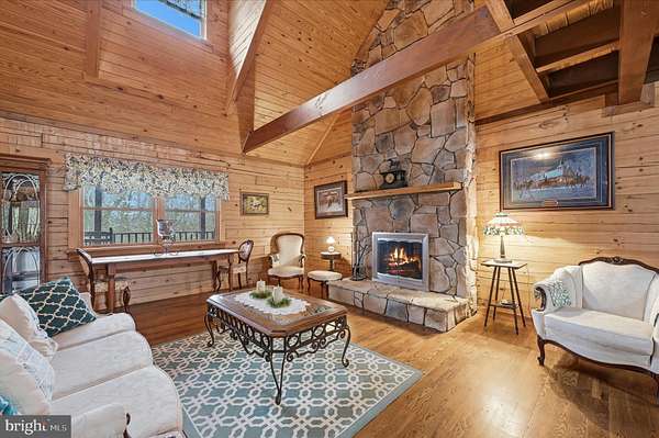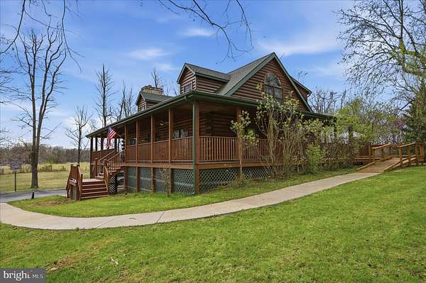 Welcome to The Waverly-an extraordinary custom log estate set in the scenic heart of Clarke County, where timeless craftsmanship meets refined modern living on a beautifully usable homesite designed for both relaxation and recreation. Inside, you're welcomed by a warm yet sophisticated open floor plan featuring expansive living spaces, rich hardwood flooring, and a breathtaking floor-to-ceiling stone fireplace that serves as the striking focal point of the main living area. The main level is thoughtfully designed for both everyday living and effortless entertaining, showcasing a beautifully appointed kitchen with a large center island and built-in desk area. The kitchen flows seamlessly into the dining space, where glass doors open to a wraparound covered porch-perfect for indoor-outdoor living. A convenient half bath accommodates guests, while the well-equipped laundry room with cabinetry and direct access to the rear porch adds everyday functionality. The main-level primary suite offers a private retreat, complete with porch access, a walk-in closet, and an en-suite bath. Designed for versatility, the upper level features a second private primary suite-ideal for guests or multi-generational living-along with an impressive loft space enhanced by a wet bar, perfect for entertaining or relaxing in style. The fully walk-out lower level expands the living space with a spacious family room featuring a bar and gas fireplace, a bonus room with two closets, a blend of laminate and hickory flooring, abundant built-in shelving, and rough-in plumbing for a future bath. Recent updates include a newer roof (approximately 3 years old) and exterior sealing, offering peace of mind and long-term value. Outdoor living is equally impressive, with a wraparound covered porch, an expansive upper-level deck, and thoughtfully designed raised garden beds for cultivating vegetables and flowers. Two 12x24 outbuildings provide exceptional additional storage. Enjoy the serenity of country living while remaining just minutes from Berryville and Route 7, offering convenient access to commuting, shopping, dining, and everyday amenities.
